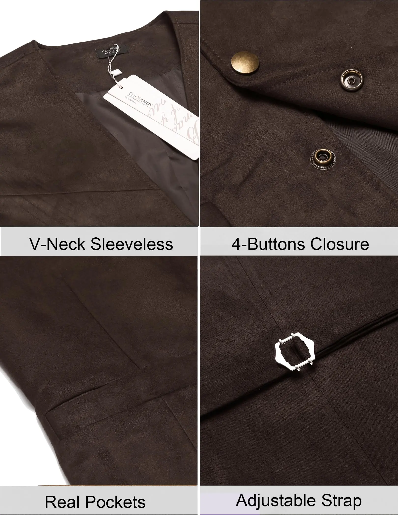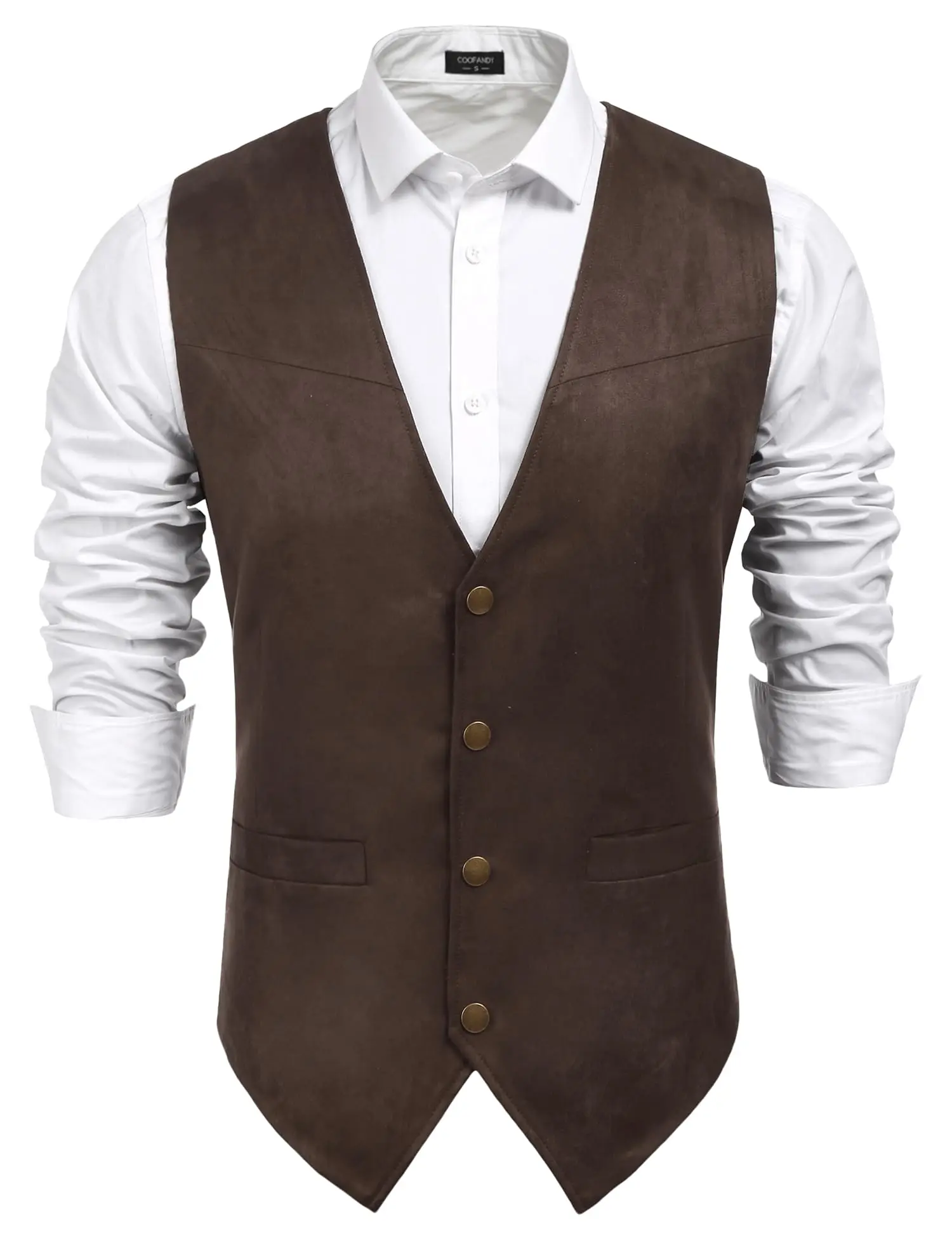 ·HIGH QUALITY-This Men's Cowhide Suede Vest ,high quality fabric blend made; Soft, elastic resistant washing and durability.