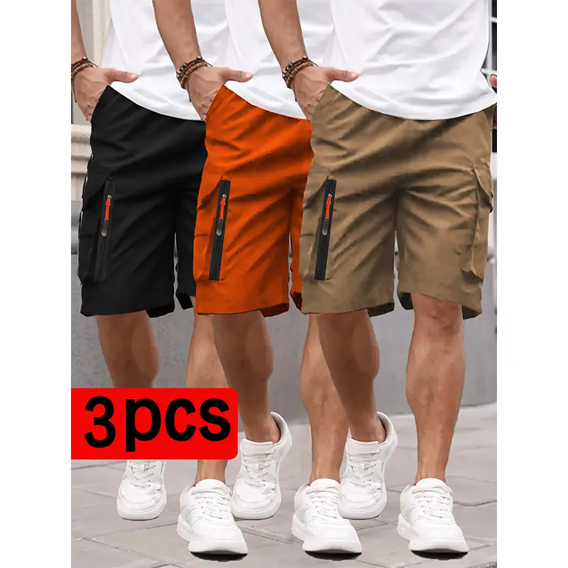 Men’s New Cargo Shorts 3-PackMen's summerZippered pocket.Loose.Outdoor Sports Knee-Length Casual Shorts