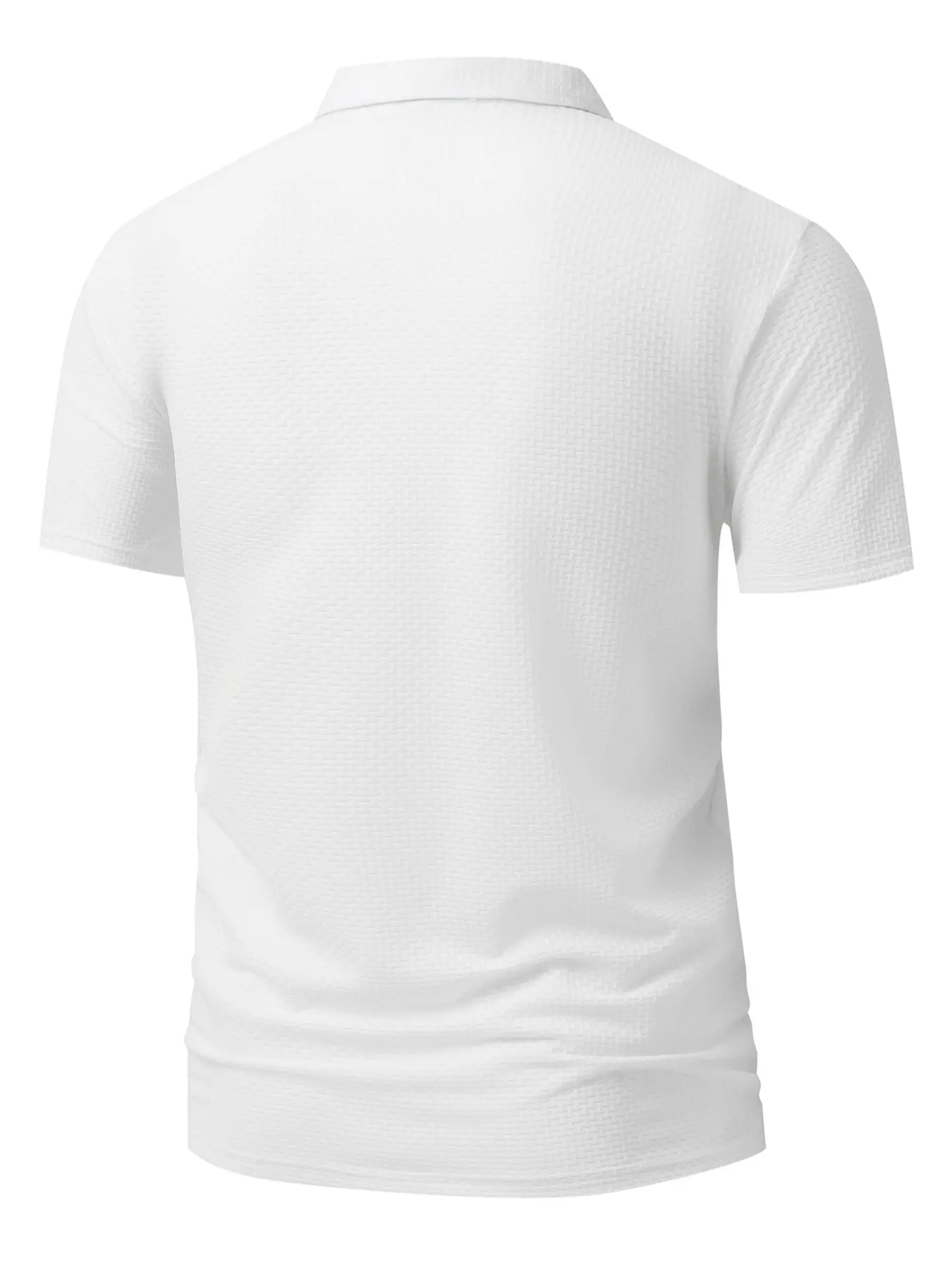 Men's Regular Fit Solid Jacquard Button Textured Polo Shirt, Casual Short Sleeve Polo Top for Summer, Fashion Men's Clothes for Daily Wear