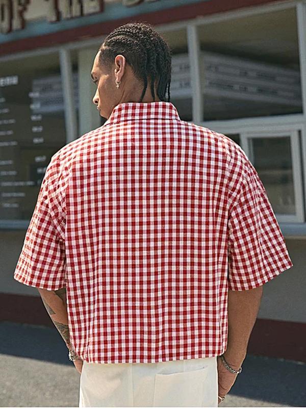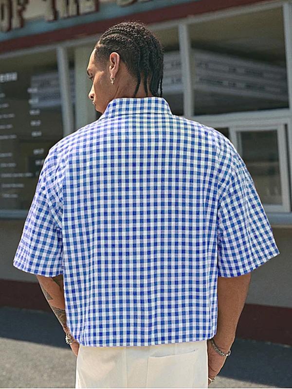 5. Men's Summer Plaid Short Sleeve Shirt, Single Button Casual Fashion Fitted Vintage Style, Trendy Street Fashion, Outdoor Wear, Fresh Minimalist Design