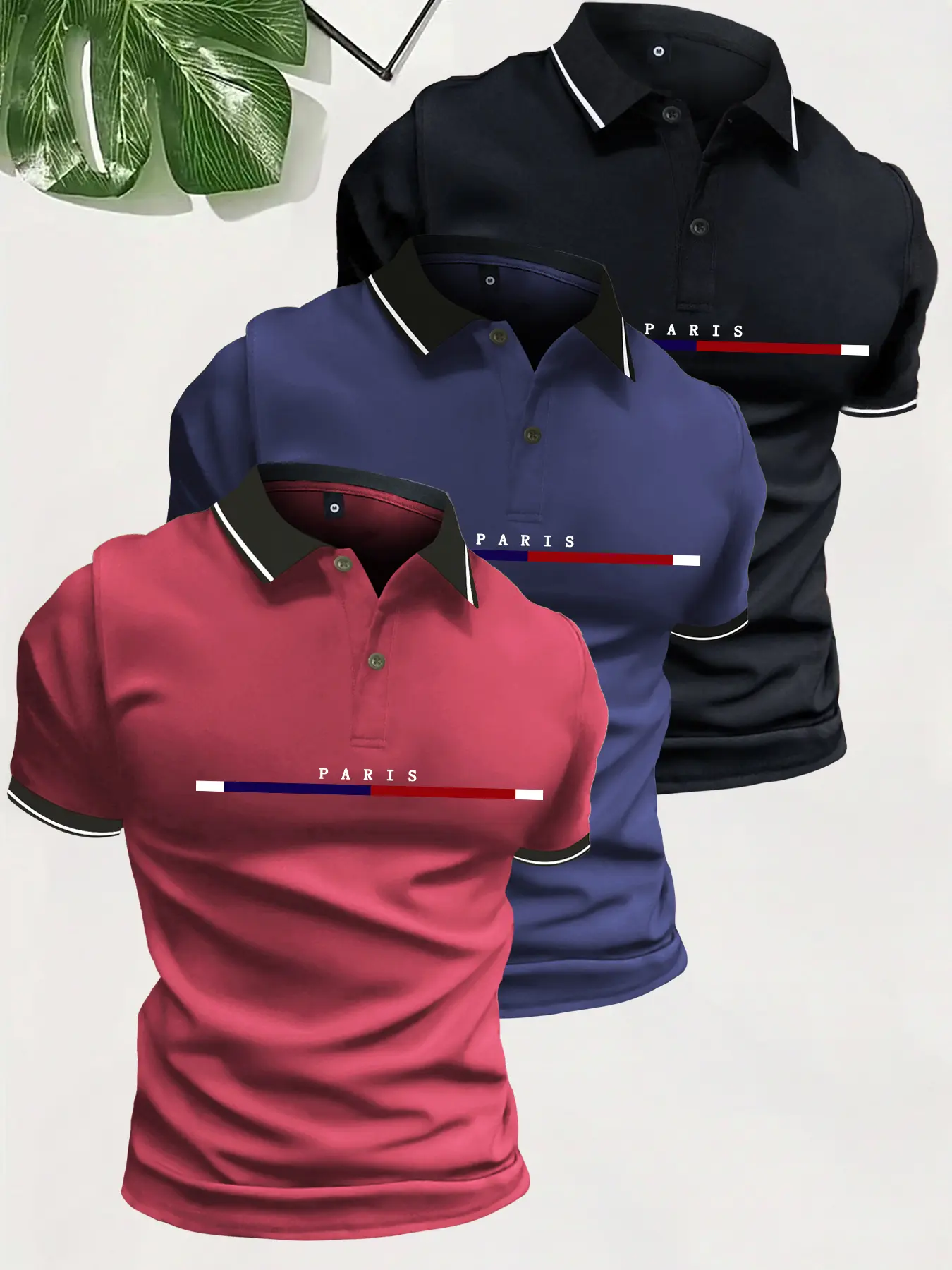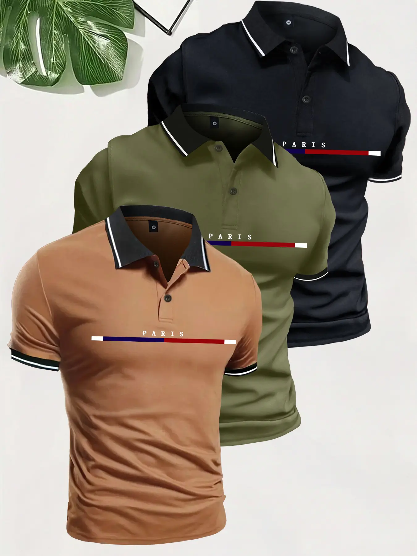 ✨ 3 Pack Men's Summer Polo Shirts featuring a Paris letter pattern. These short sleeve button-up tops come with a turn-down collar. Perfect for beach vacations, casual sports outings, or commuting. Ideal as a gift for boyfriends or husbands. 🎁