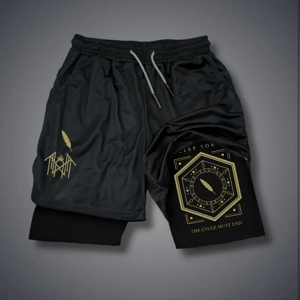 5. Sleep Token Unisex Compression Training Shorts Slim Fit Summer Outfit Graphic Double-Layer Sports Shorts Elastic Waistband Quick-Drying Breathable
