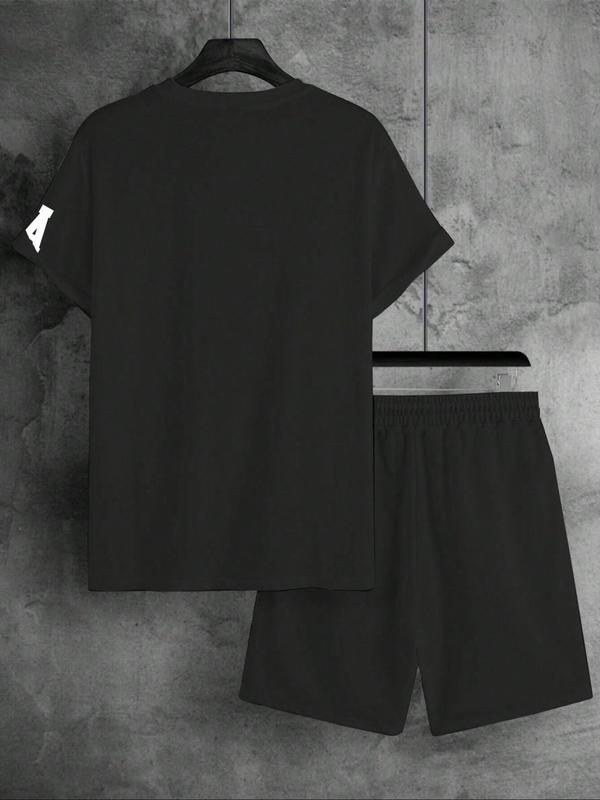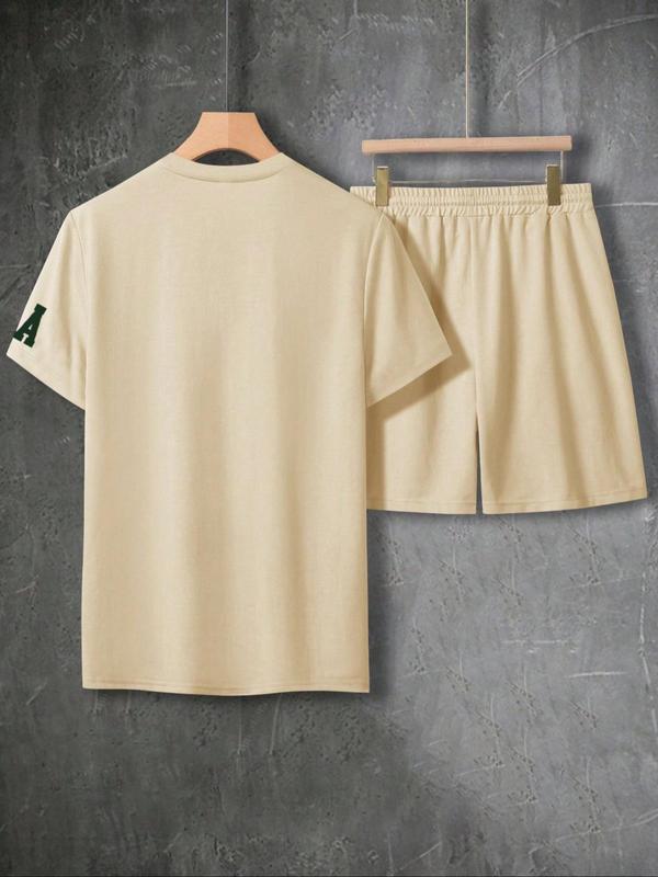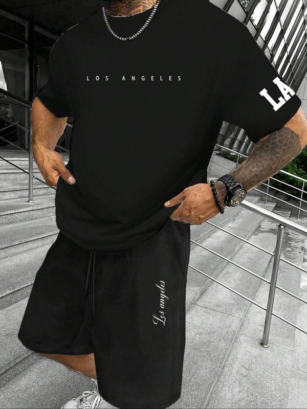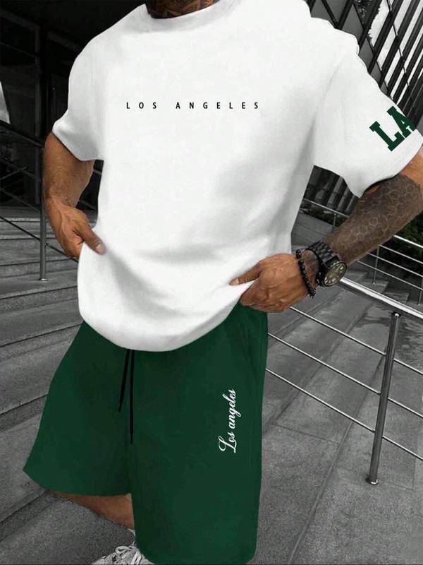 5. Two-Piece Set Men's Letter Print Short Sleeve Tee & Shorts Set, Regular Fit Casual Round Neck T-shirt & Track Shorts, Men's Summer Clothes