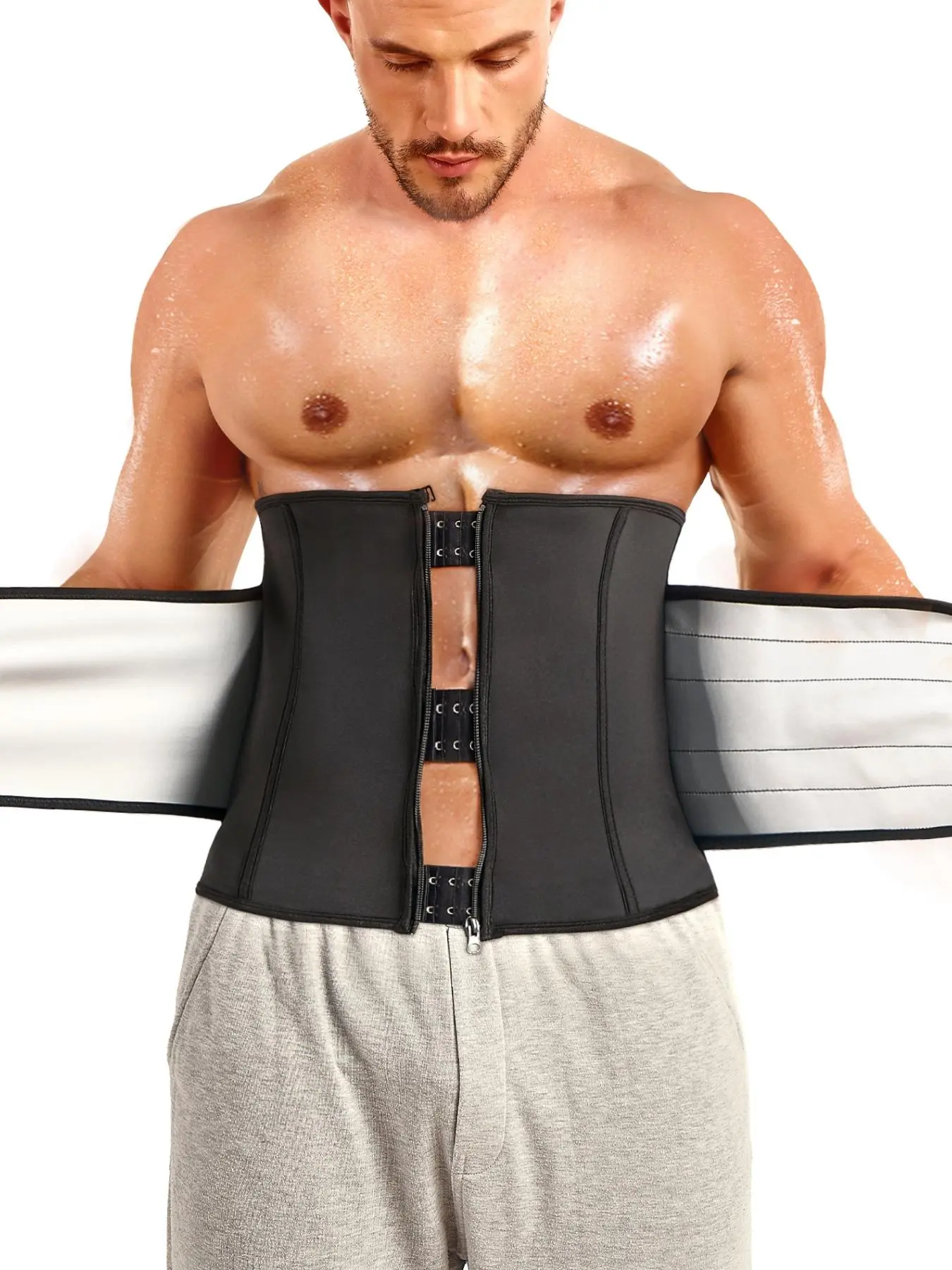 Men's Sweat Waist Cinching Sauna Shaping Belt Waist Trimmer Cincher, Casual Exercise Promotes Sweating Slimming, All Seasons Plain Zipper DesignMen's Sweat Waist Cinching Sauna Shaping Belt Waist Trimmer Cincher, Casual Exercise Promotes Sweating Slimming, All Seasons Plain Zipper Design