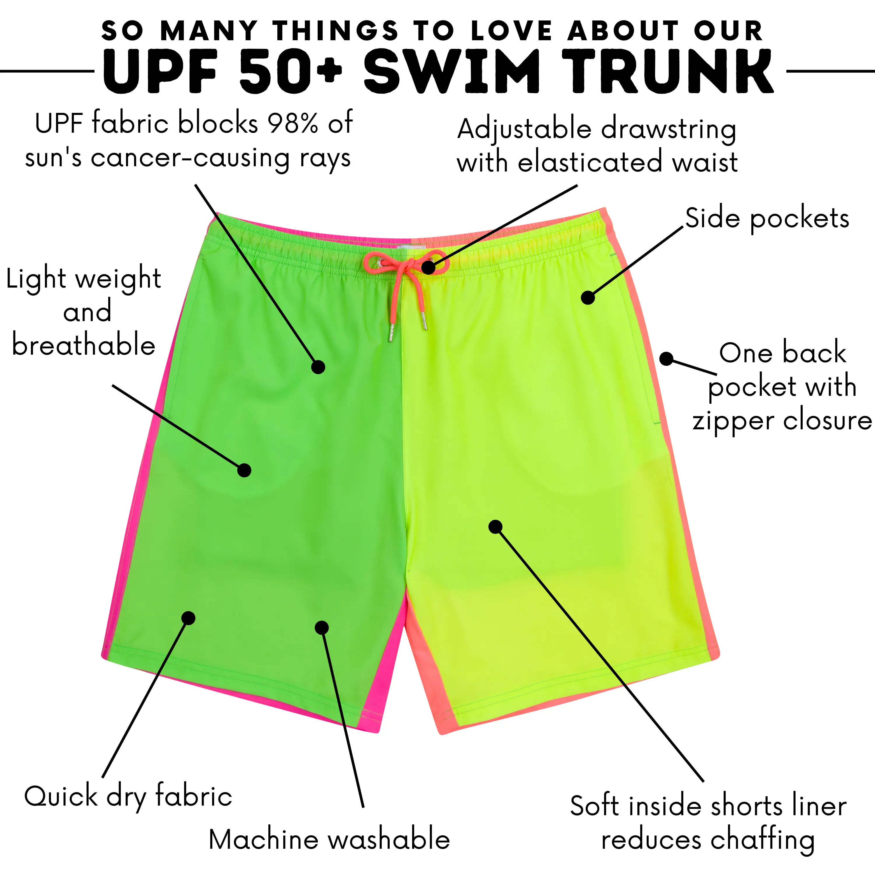 Our Men's Swim Trunks are your go-to swim shorts for awesome features and amazing comfort.