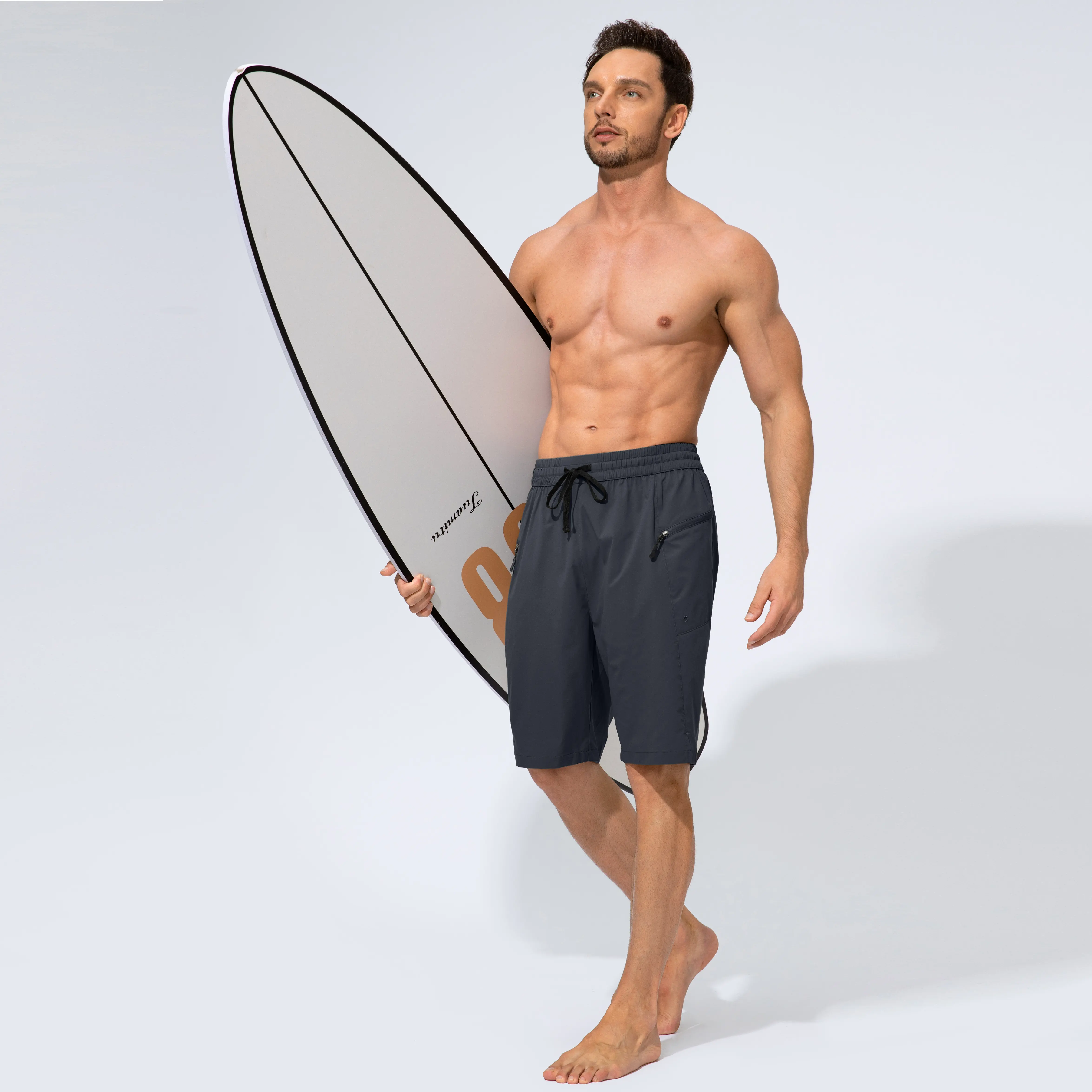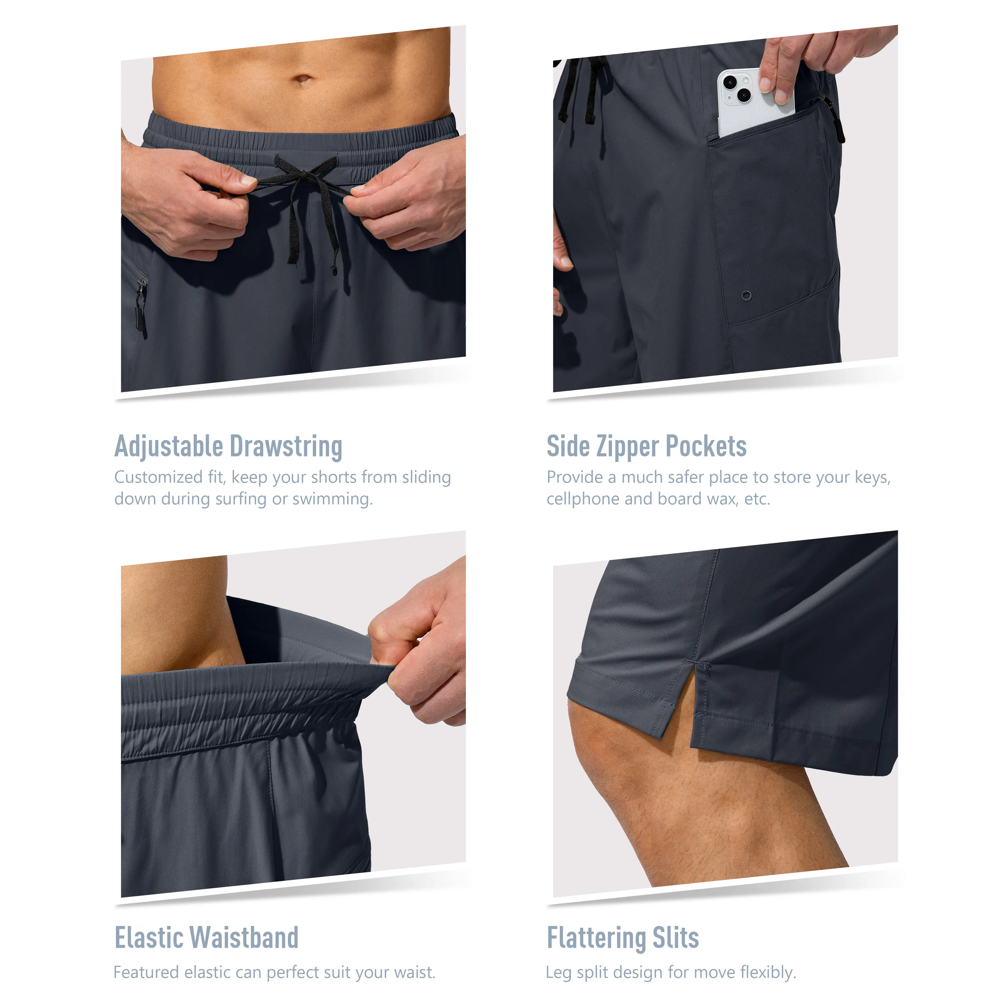 ·ELASTIC WAISTBAND WITH DRAWSTRING: Featured elastic can perfect suit your waist. Adjustable drawstring ensures shorts don't sliding down when surfing or swimming.