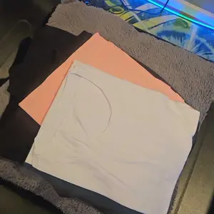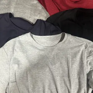 I literally just received my package at my front door. I opened the shipping package to find the shirts stuffed in the clear bag separately, and it appears that one of them has already been worn. Underarms have black lint. I ordered a large and they’re way oversized. Highly disappointed.