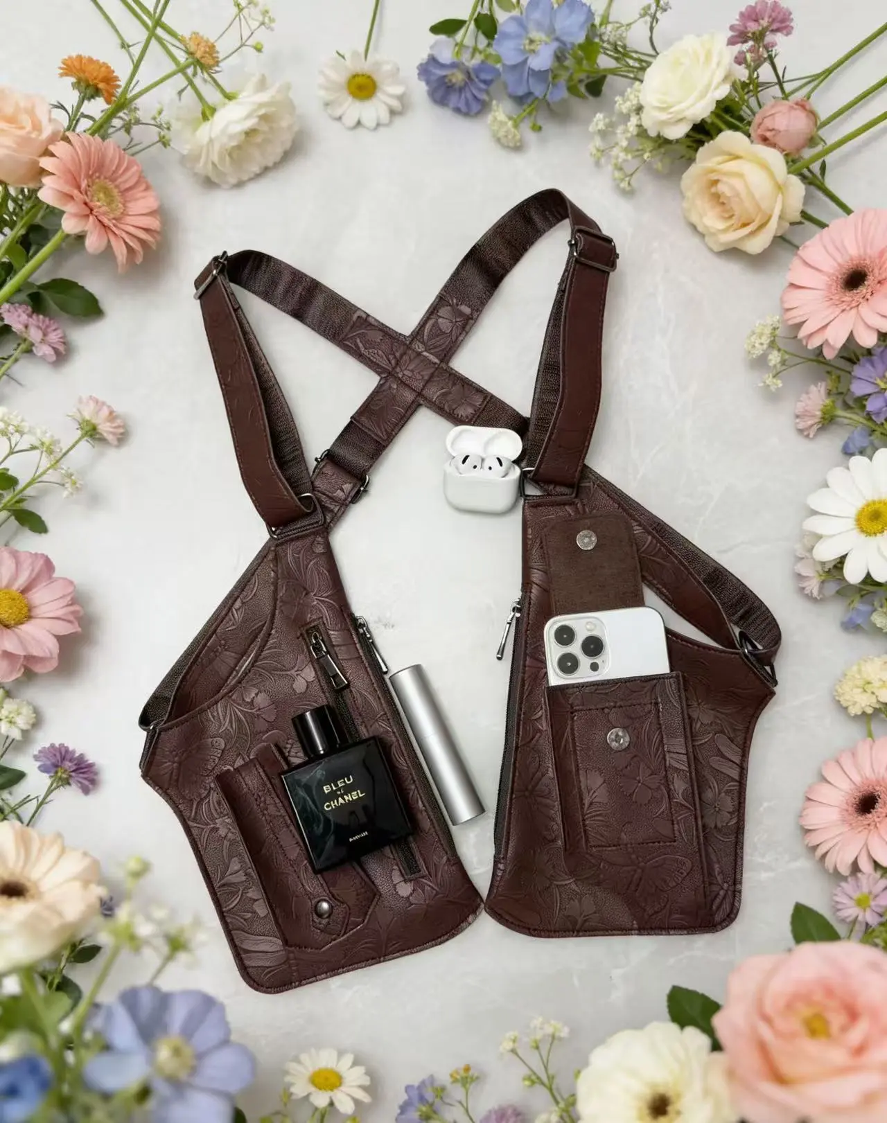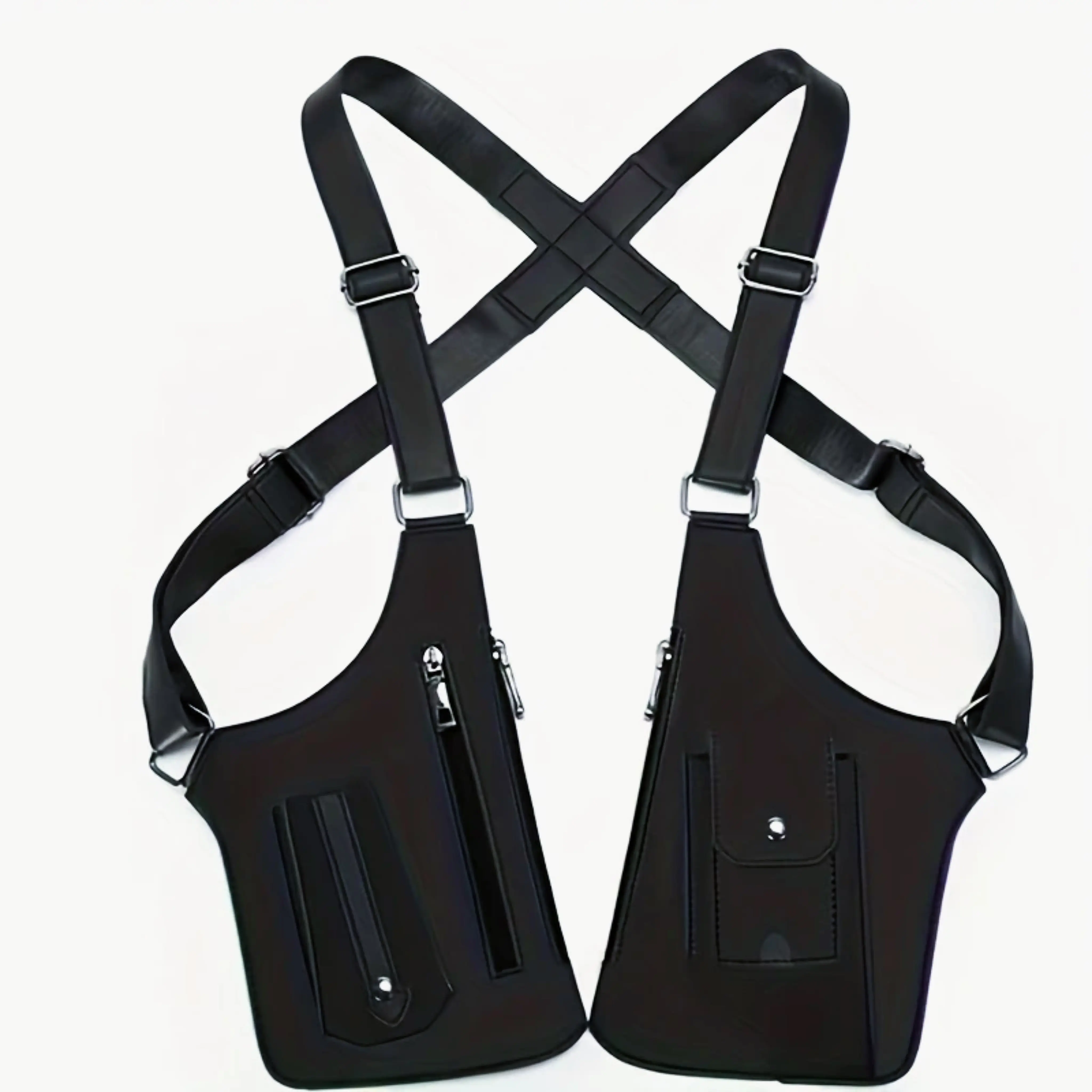 This vintage men's outdoor chest bag is made of PU material. It features a tactical chest bag with a holster, ensuring lightweight carry. The bag includes multiple flap pockets and a zipper closure for secure storage. The adjustable shoulder straps offer comfort during use. Perfect for hiking, sports, exercise, and cycling.