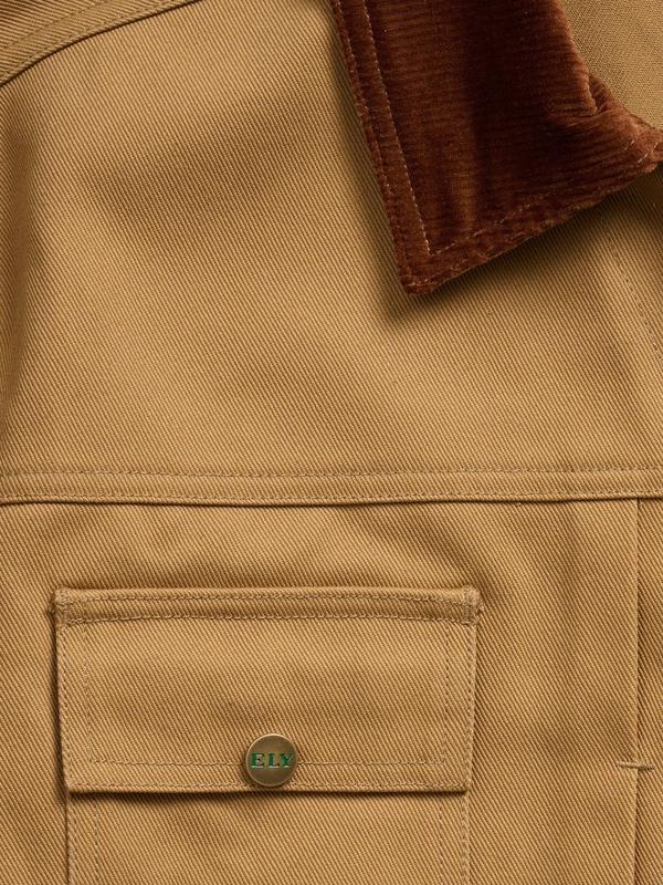 5. Men's Ely Cattleman Vintage Reissue Twill Trucker Jacket Brown Corduroy Collar 100% Cotton 14oz Twill Casual Cropped Coats