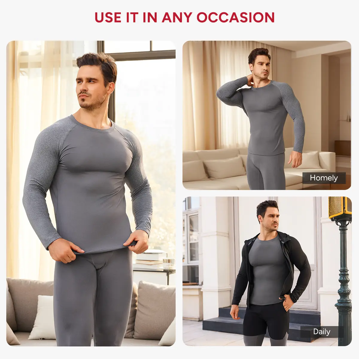🌟【Nebility】Men's Thermal Underwear Set For Winter Fleece Lining Fashion Loungewear Top and Pants Set