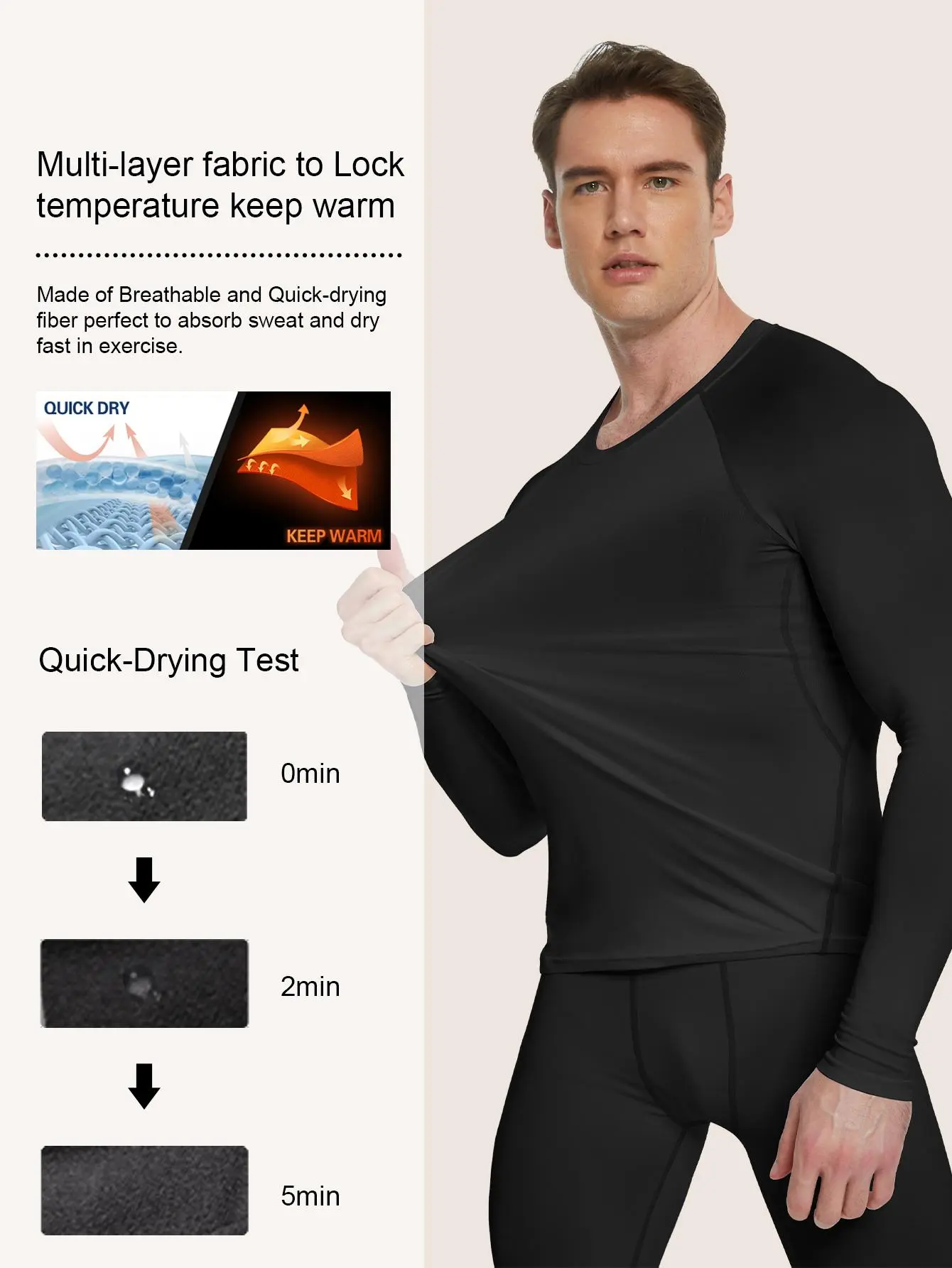 ·Snug Fit & Easy Care: These thermal long johns are designed for a snug fit, ensuring no bunching around your waistline or sleeves, minimizing heat loss.Freedom of Movement: Move with ease thanks to the four-way stretch material. Our thermal set provides flexibility without binding, so you can enjoy unrestricted motion and comfort.