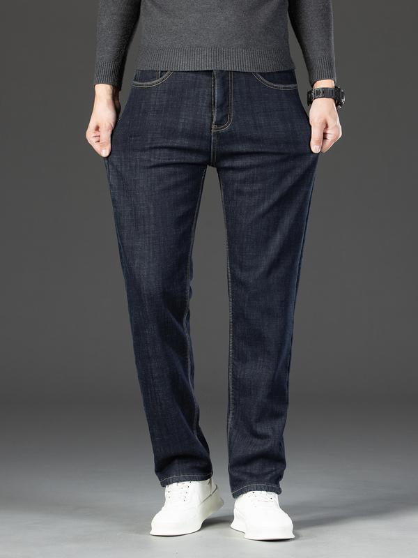 Men's Denim Jeans, Street Style Straight Leg Pants, Button Fly Closure, Slim Fit Design