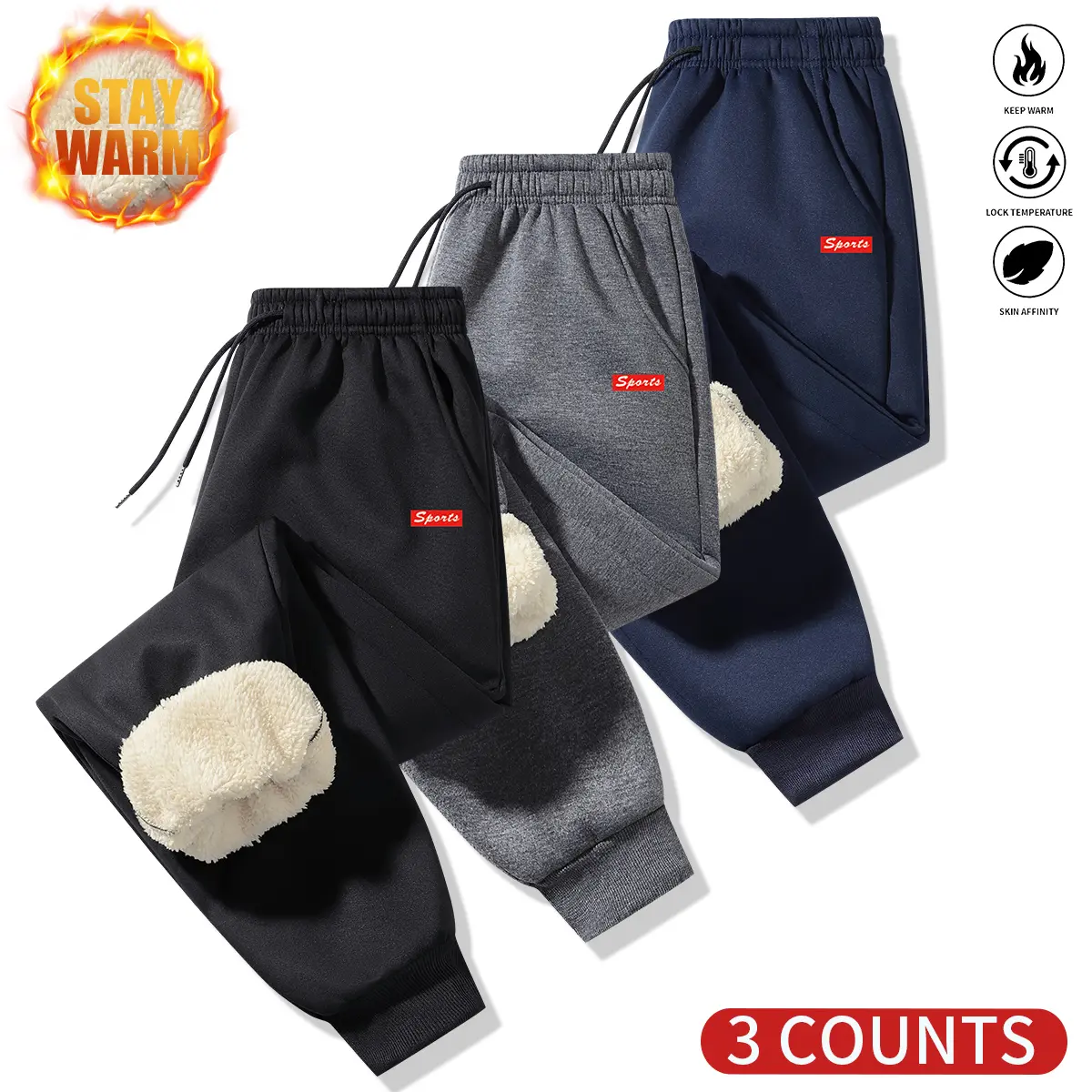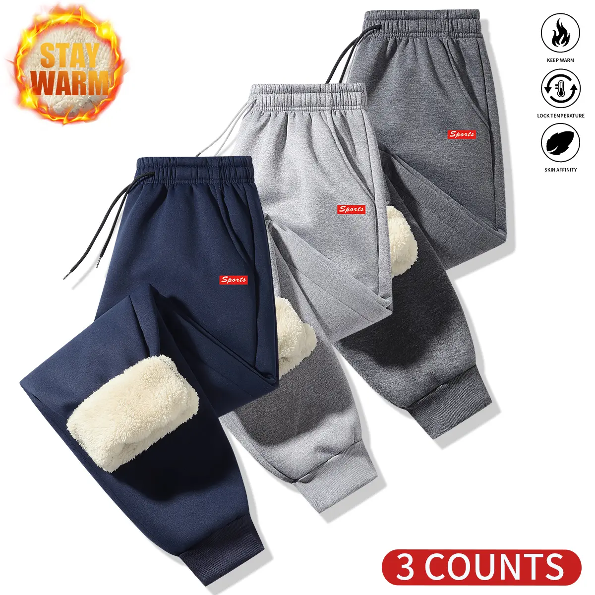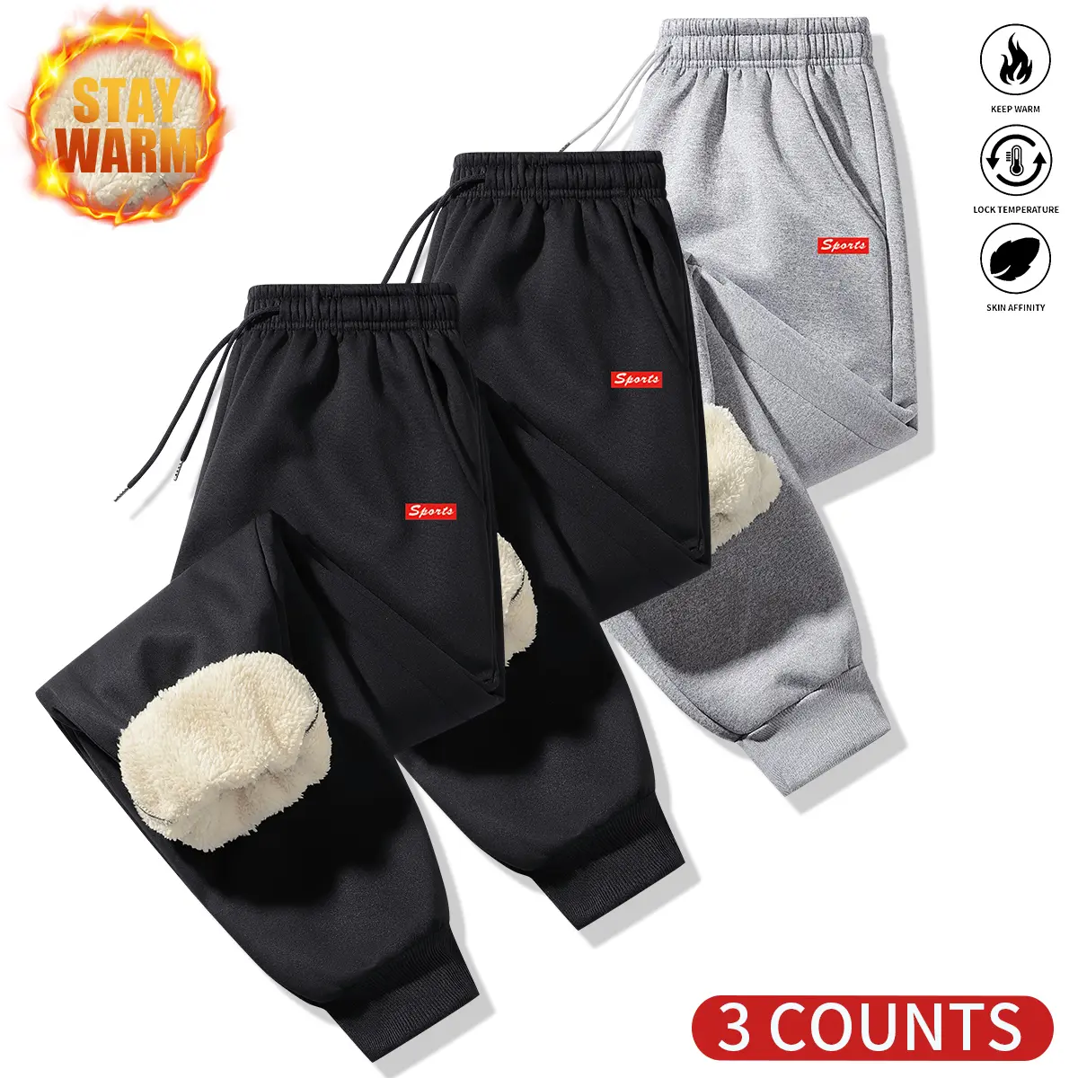Men's three-piece warm winter sports suit with fleece lining and pattern design.The inner layer is made from thick fabric, providing warmth and comfort, suitable for outdoor activities and cold weather.