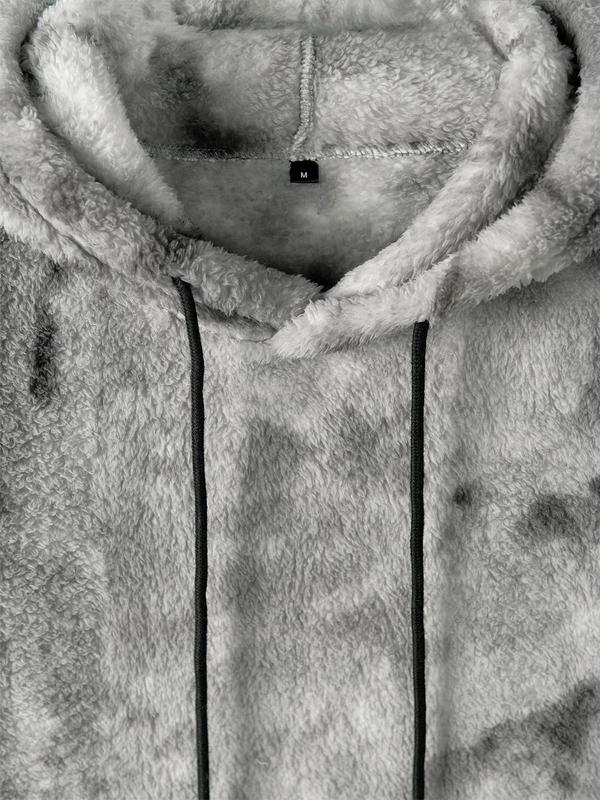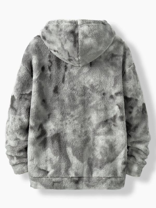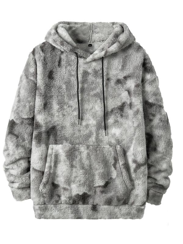 Men's Tie-Dye Hooded Sweatshirt, Soft Plush Drop Shoulder Pullover, Casual Loose Fit for Fall & Winter Layering