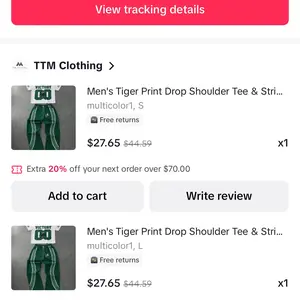 I received a different package please send the package that I ordered I ordered *Men’s Tiger print drop Shoulder Tee S and L but I received 2 dresses I’m very disappointed please send my package now!!