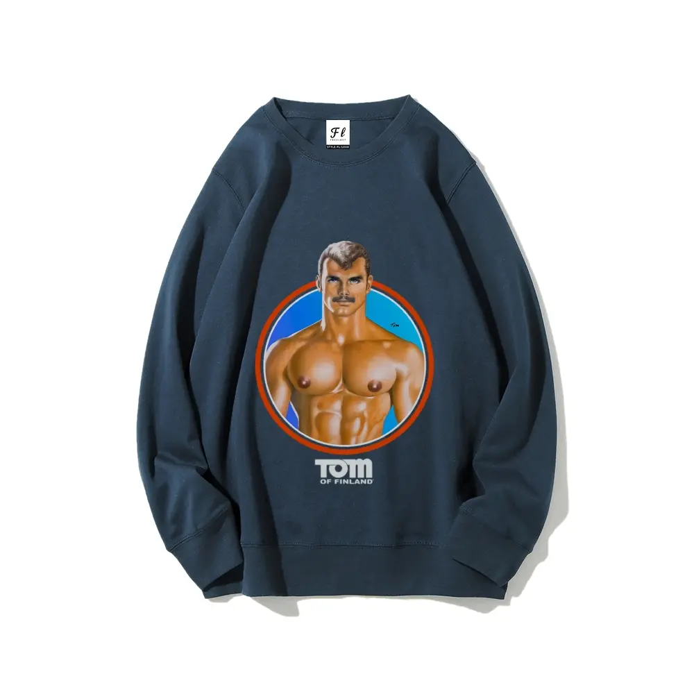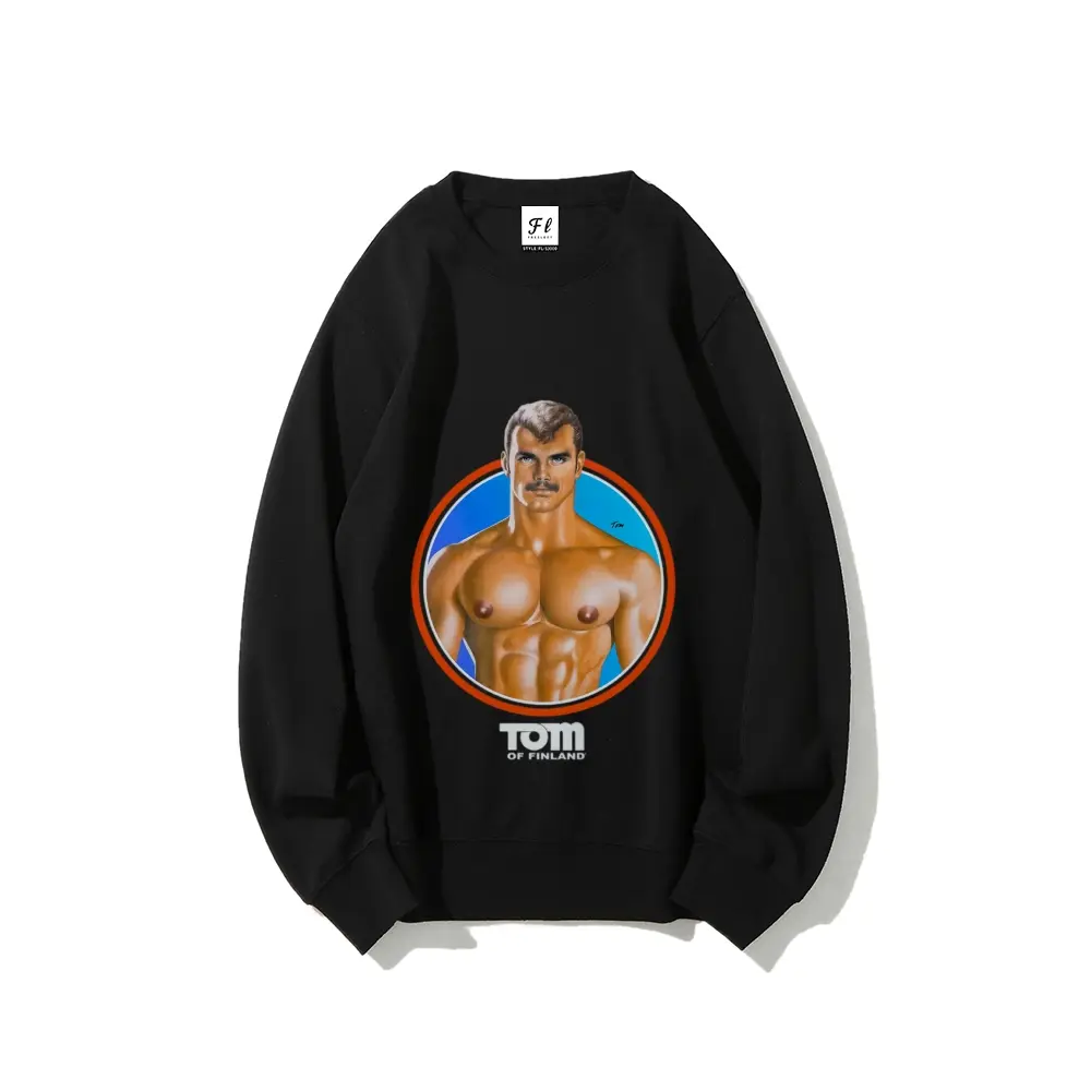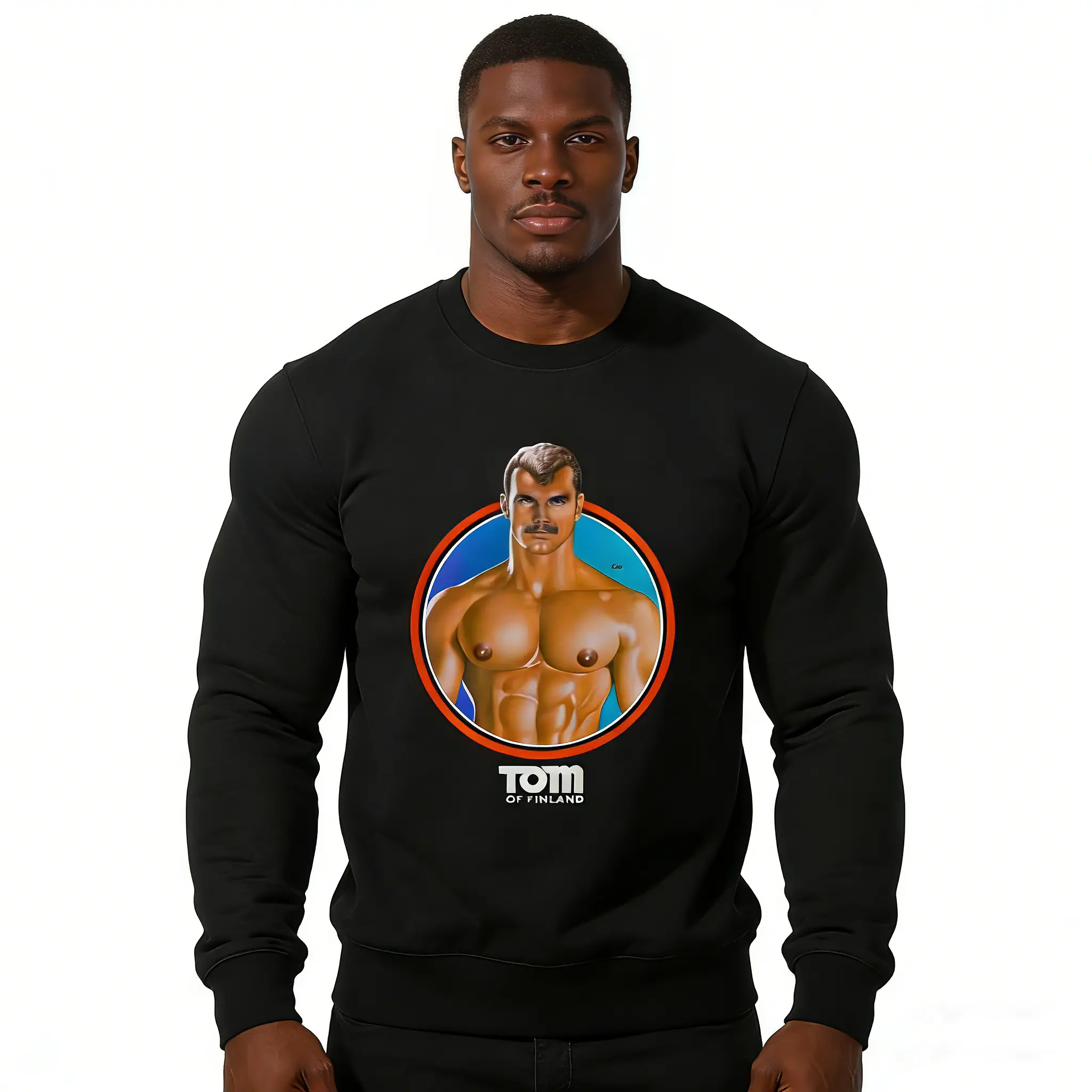Men's Tom of Finland Tribute Art Crewneck Sweatshirt, Vintage-Inspired Graphic Pullover with Iconic Artistic Motifs, 100% Cotton Heavyweight Retro Streetwear Top for Casual Wear