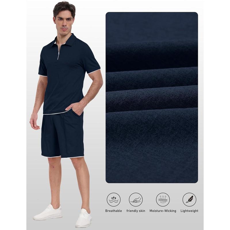 MoFiz Men's Shorts Sets Quarter Zip Polo Shirts Bottom Shorts Outfits Sport Suits Tracksuits Casual Walking Sets Comfy