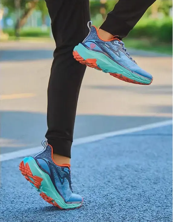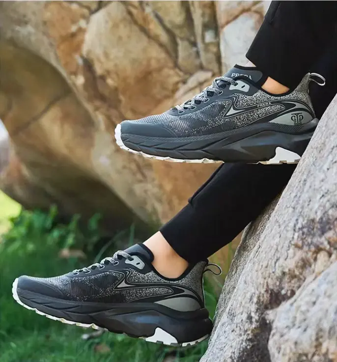 These men’s outdoor trail running shoes are designed for performance on various terrains, combining comfort, durability, and functionality. The upper features a breathable woven fabric with TPU overlays that gently wrap the foot for a secure yet flexible fit. The ventilation structure allows air to circulate freely inside the shoe, keeping your feet cool and dry even during long runs.