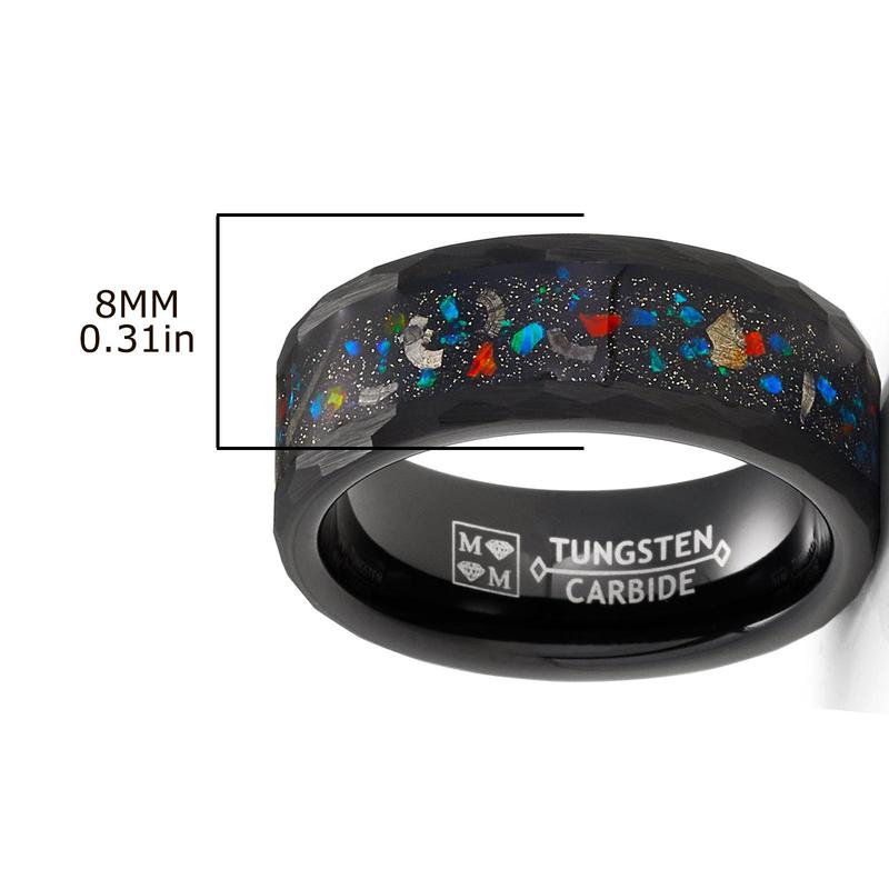 Introducing our extraordinary Tungsten Carbide Men's Ring Wedding Band, featuring a captivating cluster of stars meteorite inlay. This 8mm ring combines Durability, style, and celestial charm. Designed with a Comfort-fit black band, it's the ideal choice for weddings, engagements, birthdays, Christmas, and Father's Day.