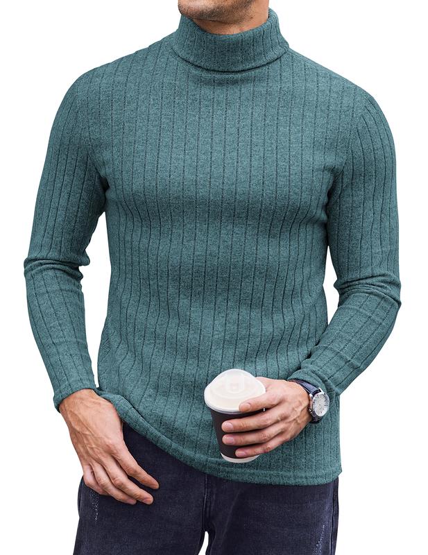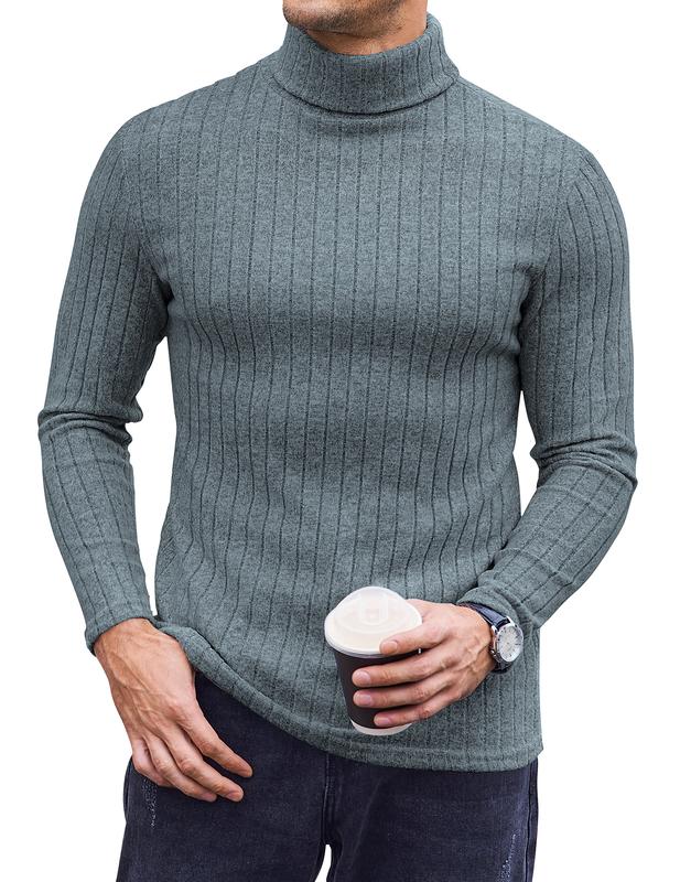 ·【DESIGN】 Turtleneck design, Solid color long sleeve ribbed shirt more attractive.