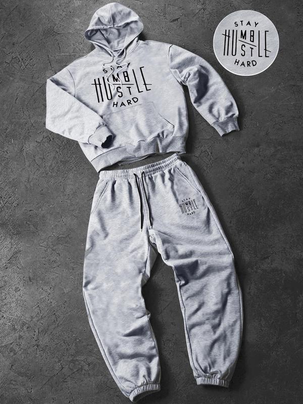 Men's two-piece tracksuit: a hooded sweatshirt and drawstring trousers with a letter print, perfect for fall and winter wear, Streetwear Tracksuit Set