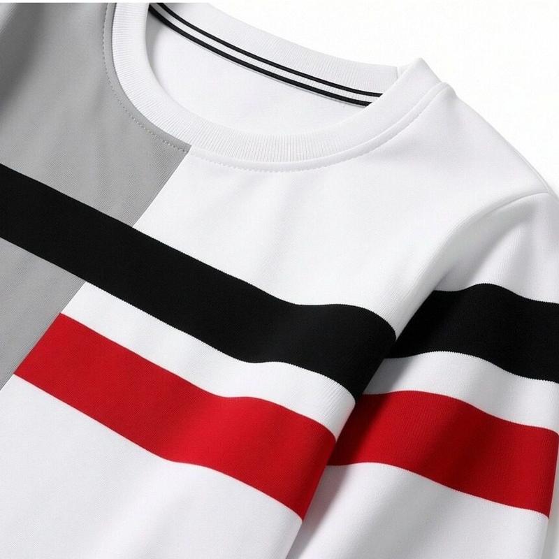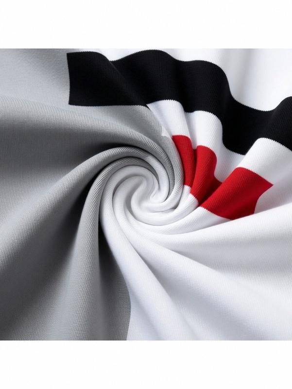 5. 2026 Fashion Street-Style Men's Two-Tone Sportswear Set, Two-Piece Crewneck Long-Sleeve Sweatshirt and Jogger Pants, White/Grey with Black and Red Stripe Design, Casual Everyday Homewear, Soft and Comfortable Activewear