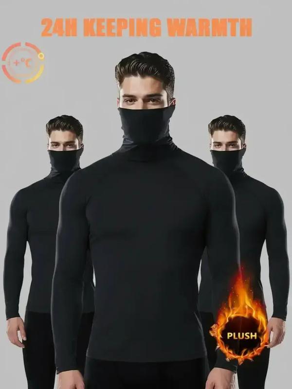 5. 3PCS Men’s Ultra High Neck Thermal Compression Tops – Lightweight Fleece-Lined Base Layer, Stretchy Slim Fit Long Sleeve Shirts for Winter Training, Running, Gym, or Daily Layering Wear