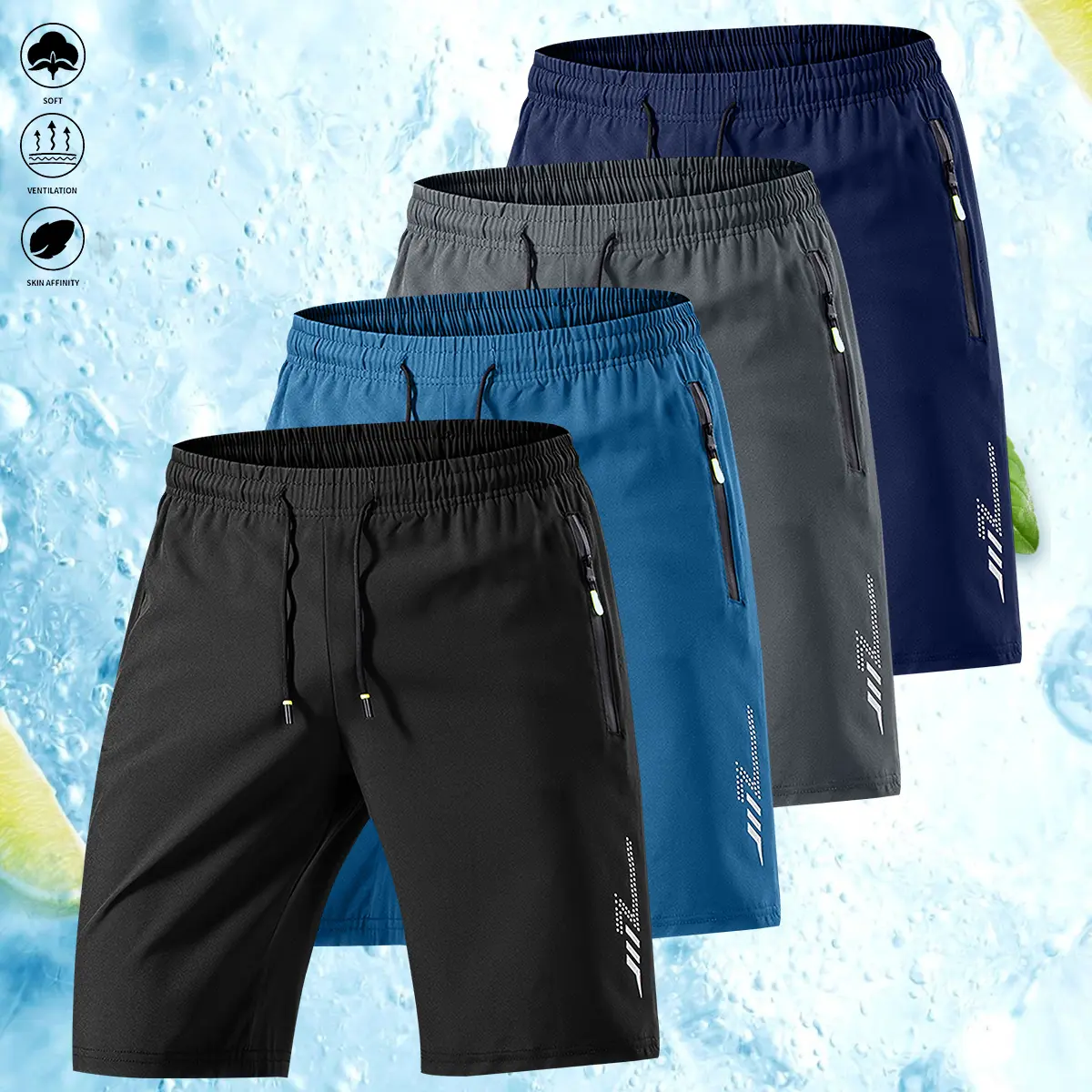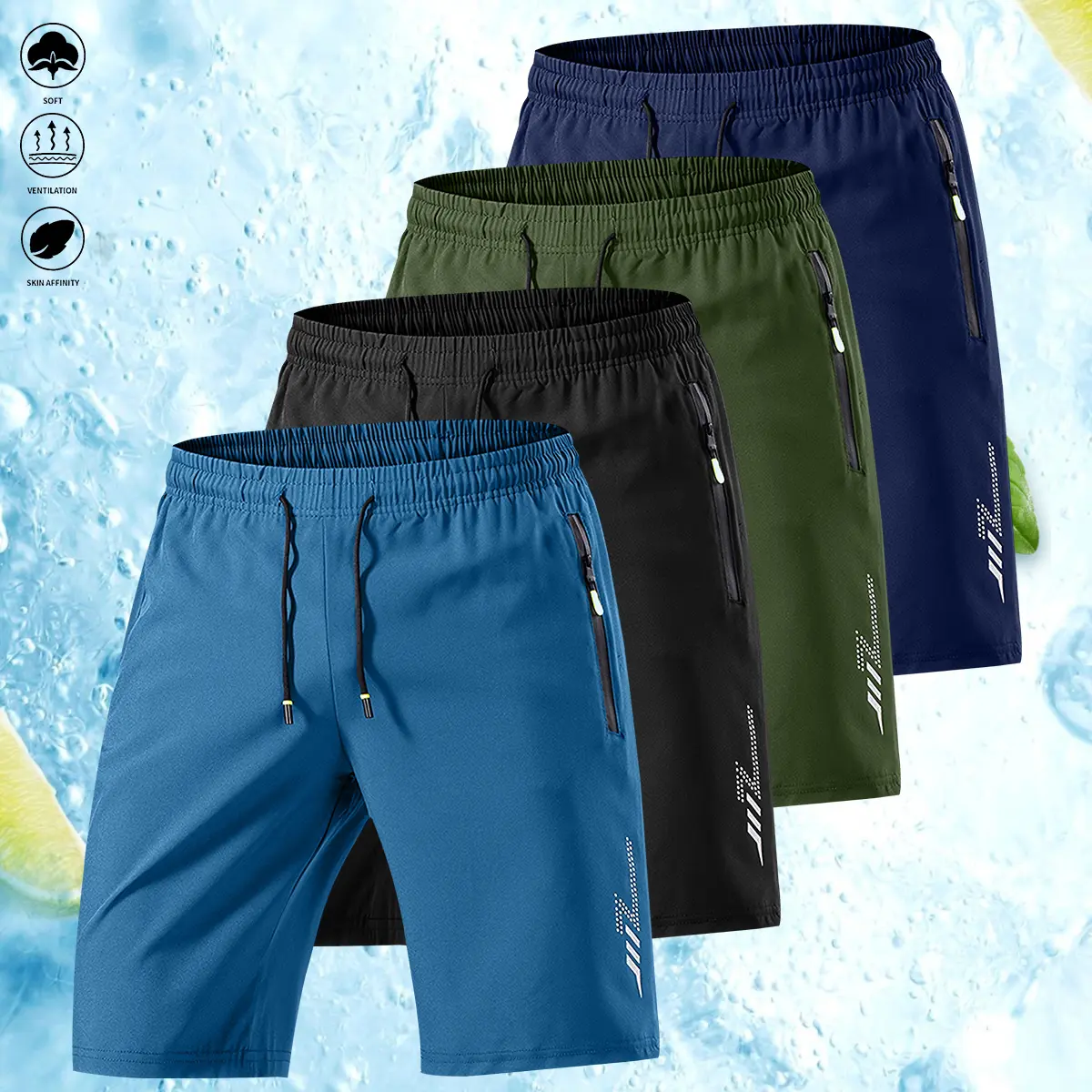 Men's ultra-lightweight quick-drying large-size sports shorts - fashionable and casual running and fitness gear, made of breathable polyester/spandex blend, perfect for beach and outdoor activities, featuring zipped pockets and elastic waistband