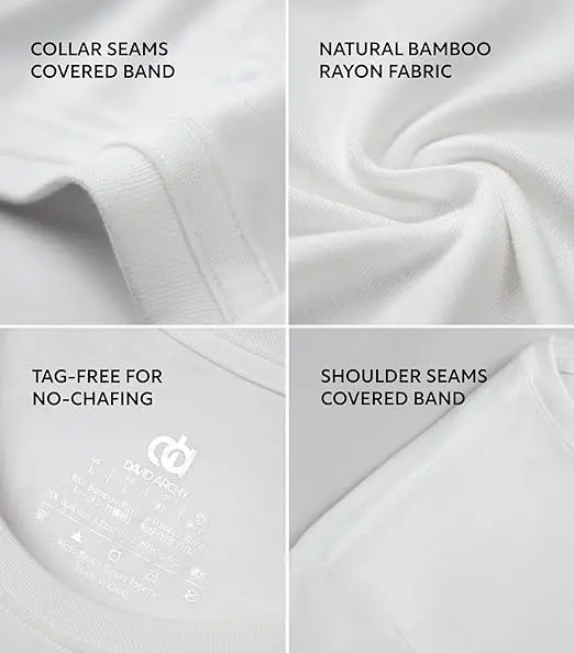·EVERY DETAIL MATTERS: Tag-free design, invisible collar, non-itchy collar seams... More details from DAVID ARCHY men's undershirt to be explored by you. If the product does not meet your expectation, please feel free to contact us and we will be sure to get the issue resolved.