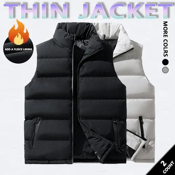Mens Vest Jacket - A versatile wardrobe essential. This sleeveless jacket features a stand-up collar, perfect for autumn and winter. It's designed as a casual waistcoat, offering style and functionality. The zipper closure ensures easy wear. Ideal for those seeking a waterproof option, this brand clothing item keeps you dry in cooler weather.