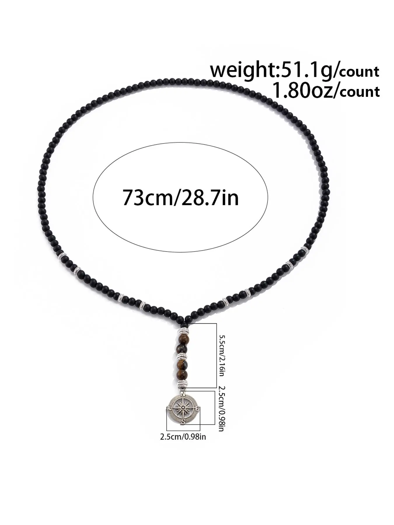 5. Men's Vintage Compass Design Pendant Necklace, Fashionable Beaded Necklace for Party, Daily Decor, Trendy All-match & Exquisite Jewelry for Birthday Gift, Modern Versatile Accessories