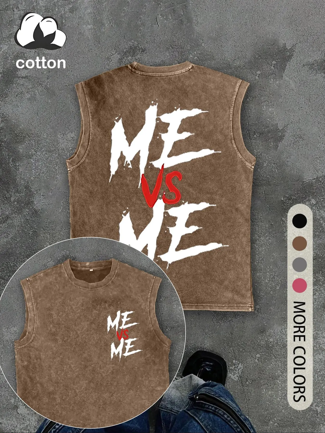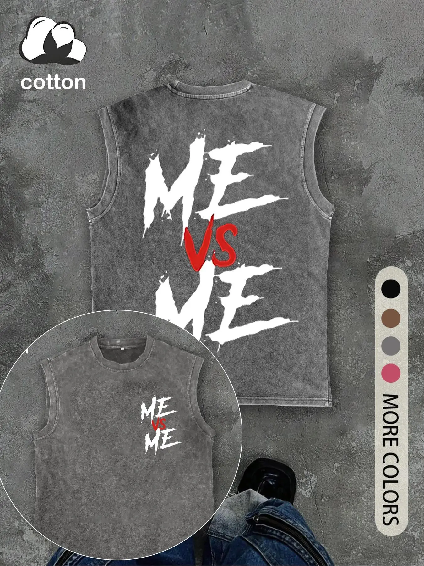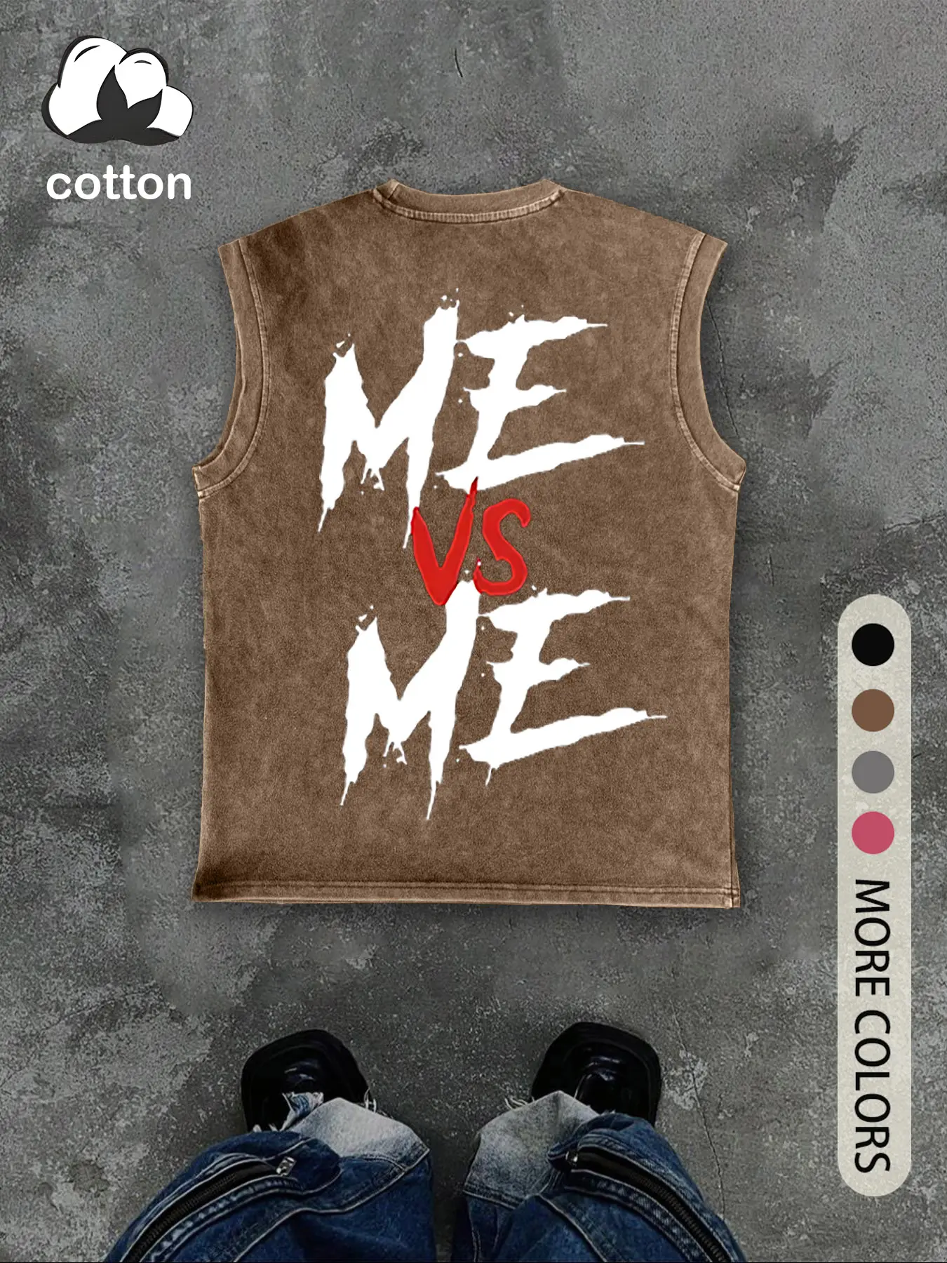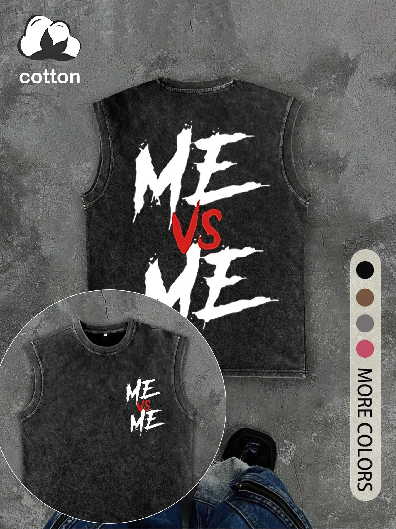 Men's Vintage Distressed "ME VS ME" Print Round Neck Tank Top#OOTD #menclothing #sleeveless top#tanktop #summermashup