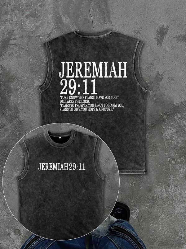 Men's Vintage Graphic Print Round Neck Tank Top, Regular Fit Casual Sleeveless Printed Crew Neck Top for Summer, Men's Clothes for Daily Wear, Socks