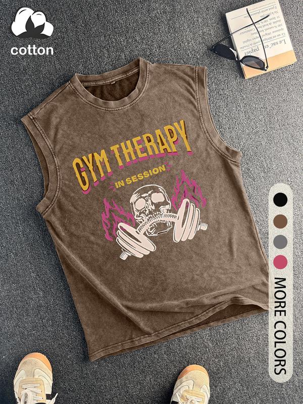 Men's Vintage Graphic Round Neck Tank Top, Regular Fit Casual Sleeveless Top for Summer, Men's Clothes for Daily Wear, Socks