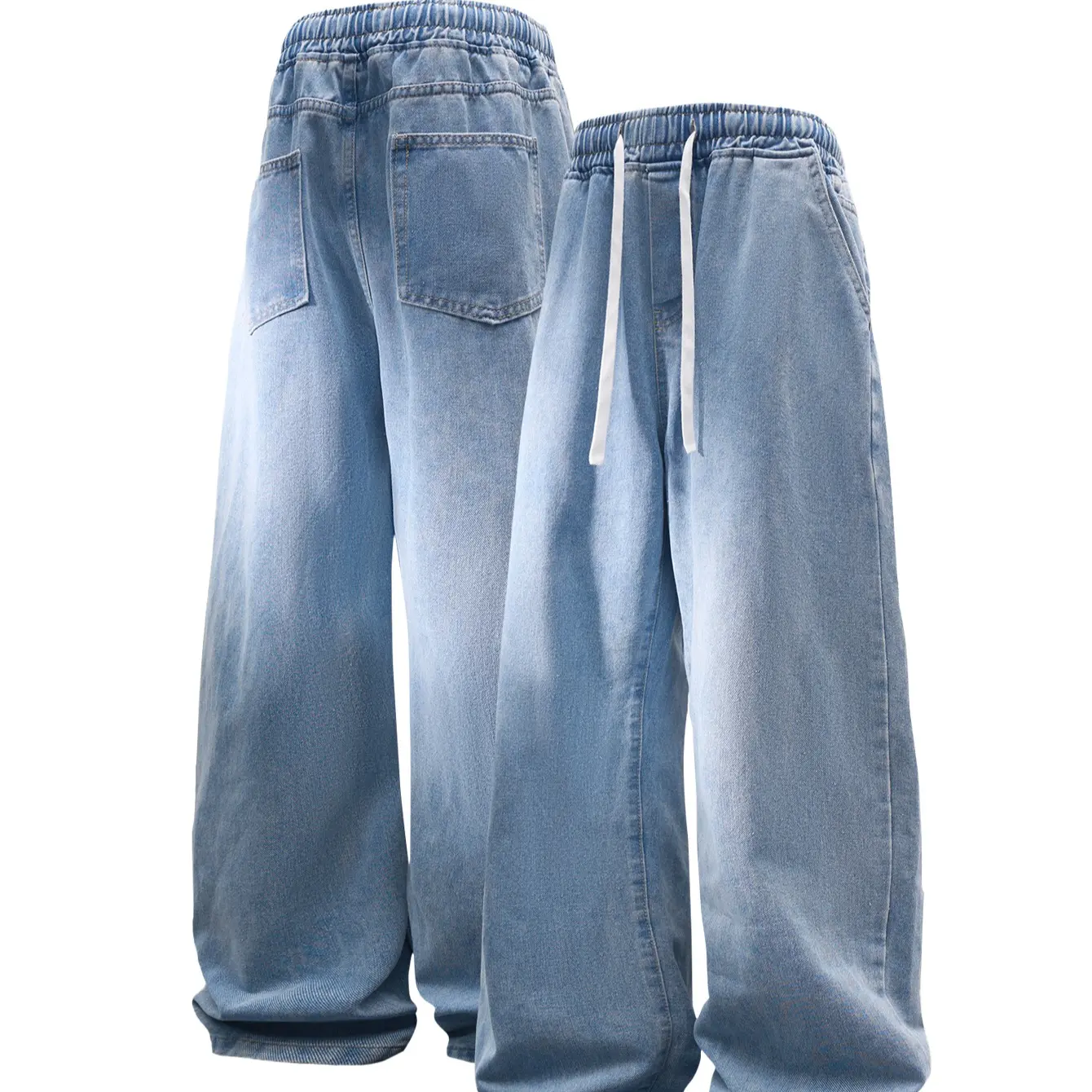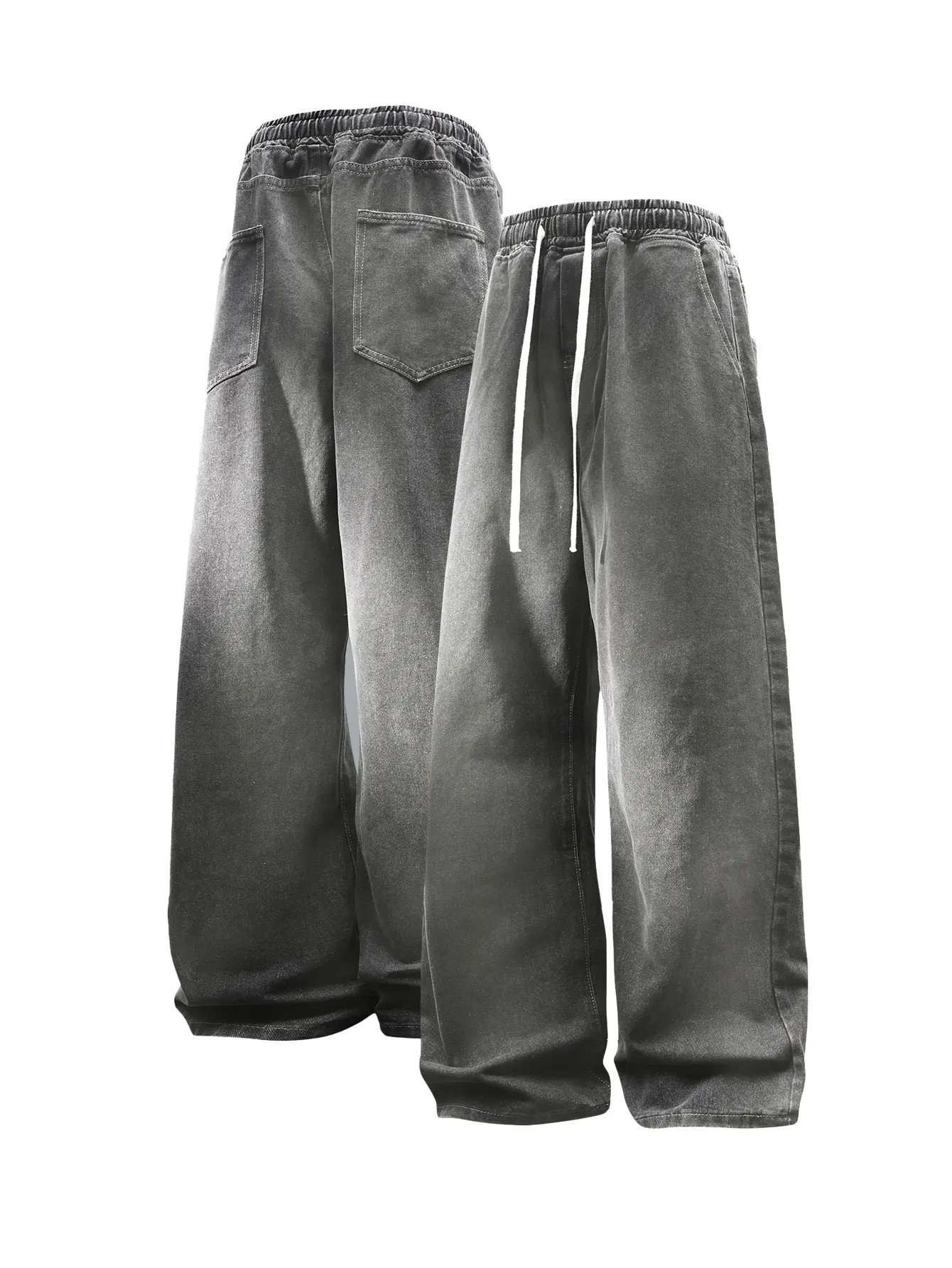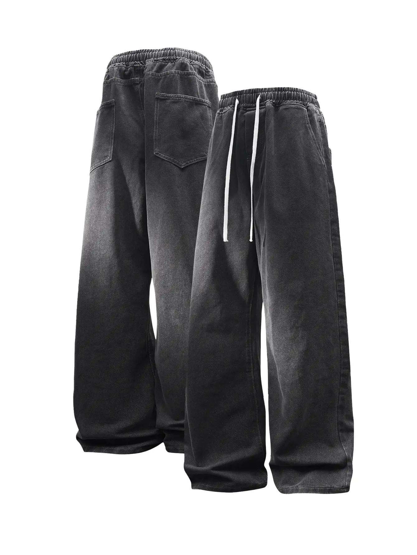 CCCMAI Men’s Vintage Loose Jeans Black Smoke Gray Blue Versatile Fashion Loose Jeans Menswear Streetwear Denim Pants Trouser Plain Pocket