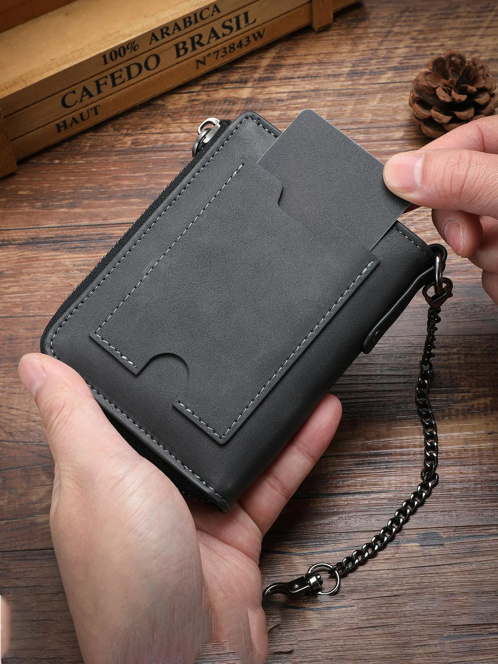 A short cool wallet with a chain to prevent loss#wallets #wallet #zipper #shortwallet #menswallet #fatherdaygift #boyfriendsgift