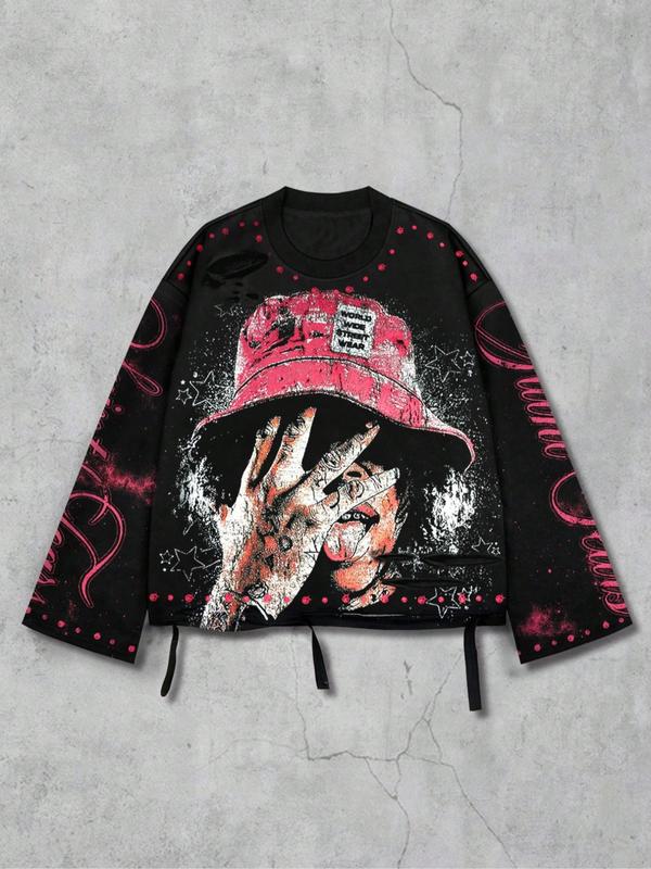 Vintage Icon Print Long Sleeve 🤡 #LooseCrop #StreetStyle #Y2KTrend #BlackStatementTop#tiktokshopholidayhaul