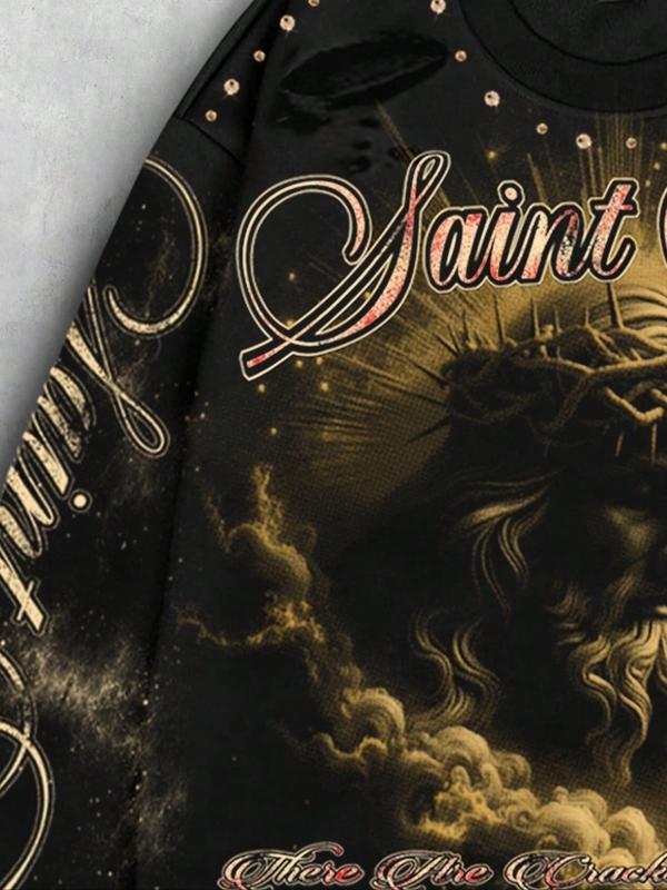 Men's Vintage Street Style Saint Print Long Sleeve Round Neck T-Shirt, Loose-Fitting Short Fit, Fall 2000s Fashion, Casual Wear #menshirtsonline #affordablemensstyle #lilnasxshirt #christmasembroideredsweatshirts #versatiletee #longsleevessweater #christianmensfashion #powerrangersstreetwear #narutostreetwear #tommyhilfigershirts