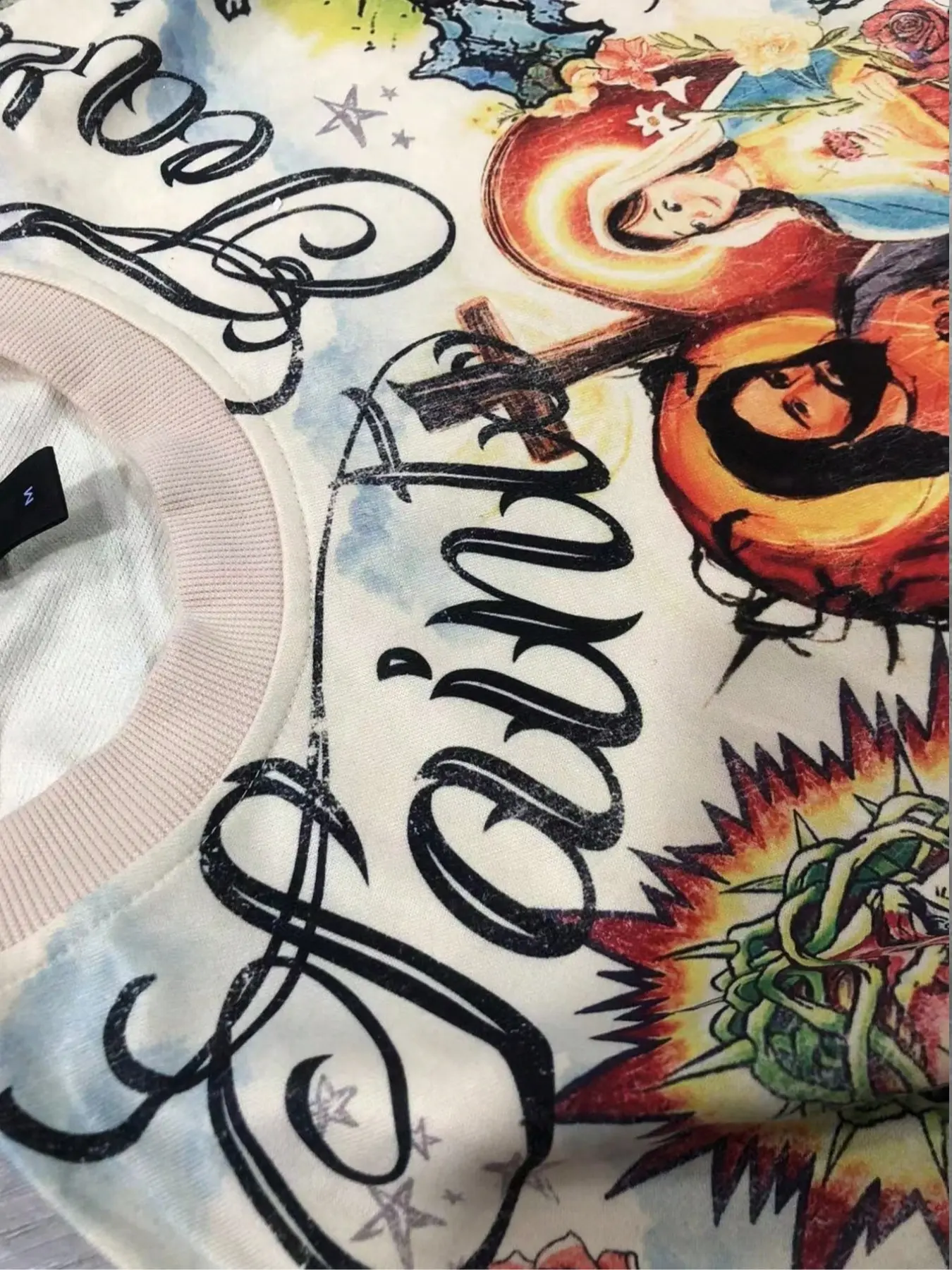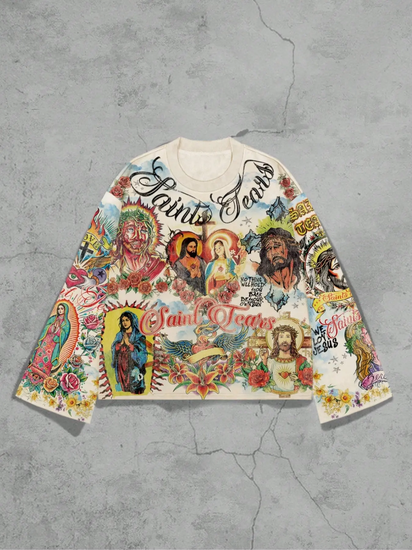 【Distinct Graphic】: Featuring a unique saint pattern print, this long sleeve tee sets itself apart in streetwear culture.