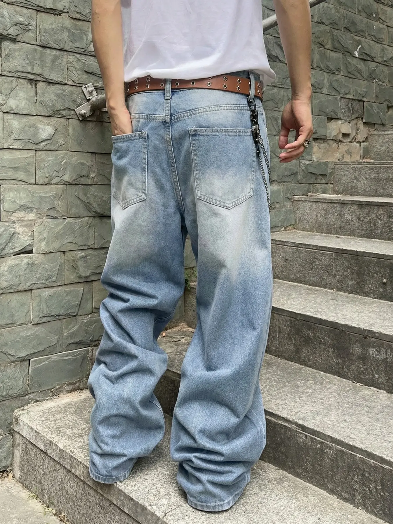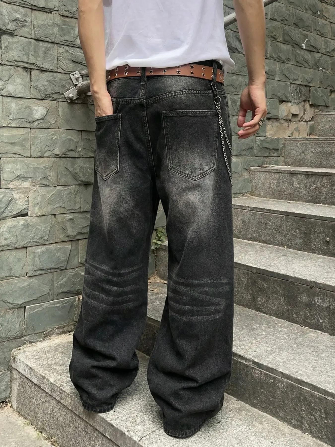Men's Vintage Washed Loose Fit Wide Leg Jeans Pants, Menswear Long Y2K Street Style Denim Jeans, Perfect Gift for Boyfriend & Husband