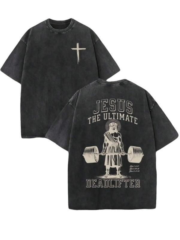 ·Oversized Streetwear Tee: Faith & Weightlifting Design, All-Season Comfort.
