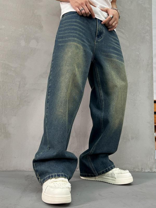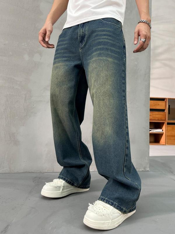 Men's Vintage Wide  Leg Jeans, Loose Casual Comfy Denim Pants for Daily Wear, Woven Bottoms for All Seasons, Denim Streetwear