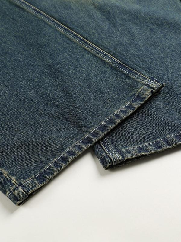 メンズ ヴィンテージ ワイドレッグ ジーンズ、カジュアルで快適なデニムパンツ、オールシーズン対応のデイリーウェア