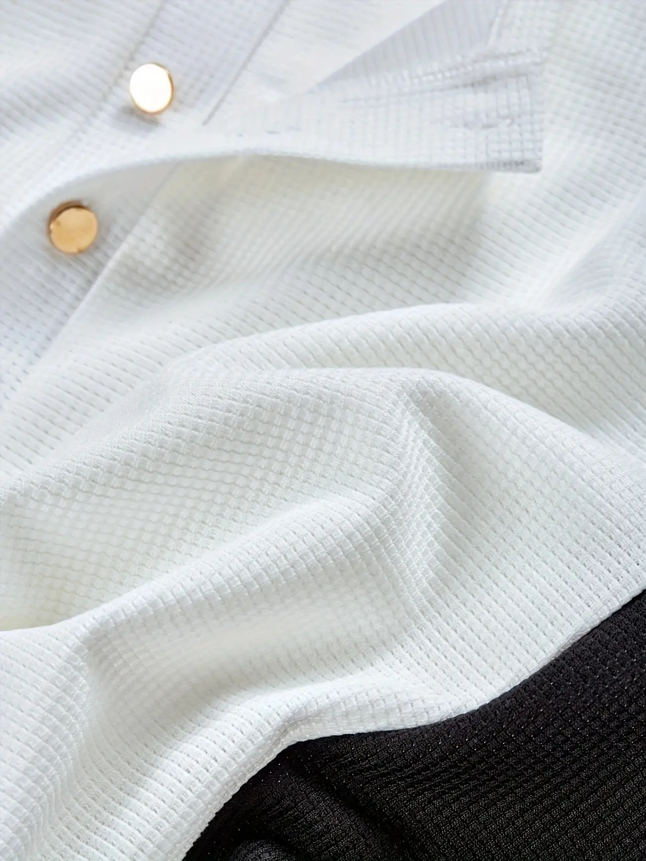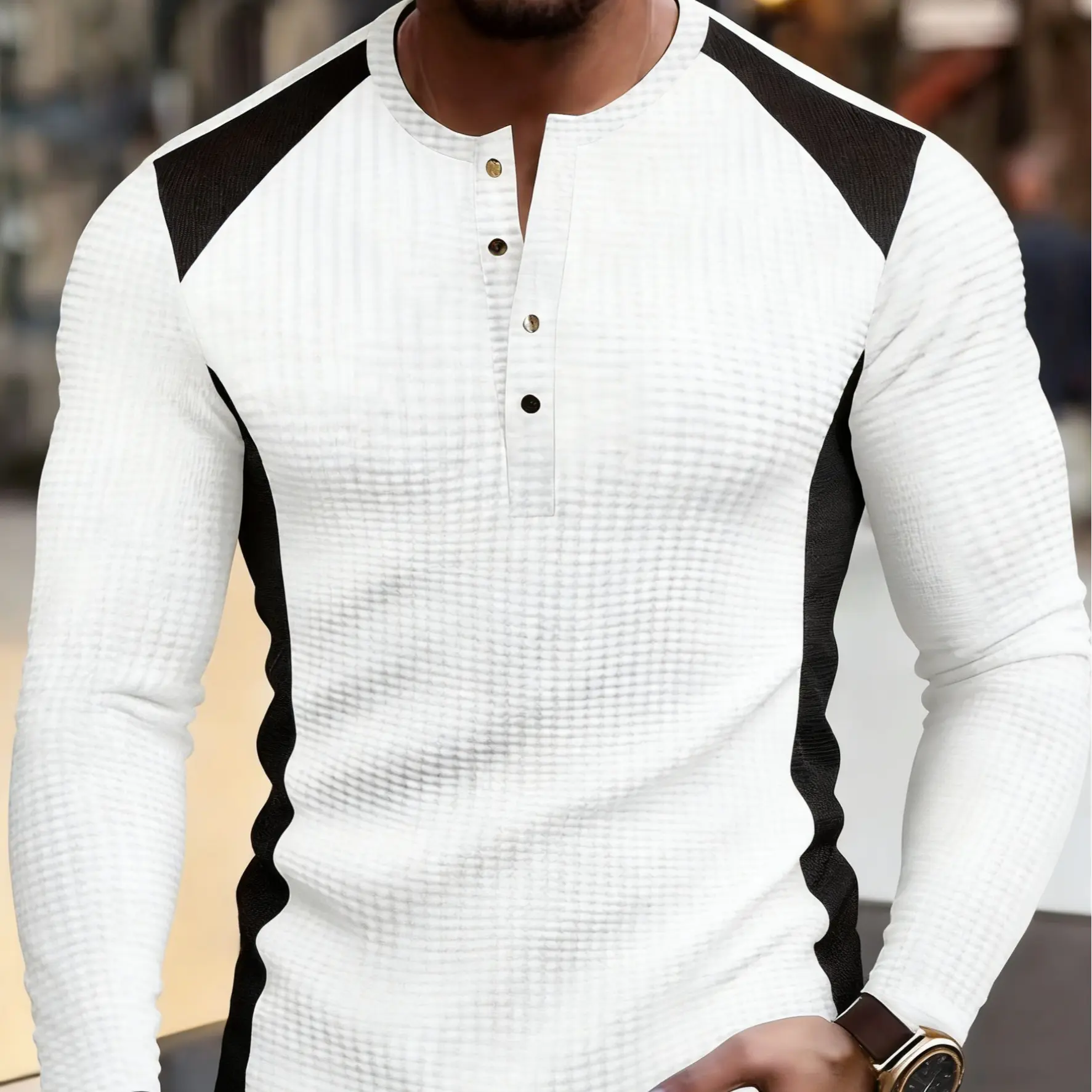 Men's Waffle Knit Henley Long Sleeve T-Shirt - Slim Fit Contrast Color Patchwork Design | Soft Breathable Fabric | Black & White Stylish Casual Top | Suitable for Daily/Date/Office | Autumn Winter Fashion EssentialMen's Waffle Knit Henley Long Sleeve T-Shirt - Slim Fit Contrast Color Patchwork Design | Soft Breathable Fabric | Black & White Stylish Casual Top | Suitable for Daily/Date/Office | Autumn Winter Fashion EssentialMen's Waffle Knit Henley Long Sleeve T-Shirt - Slim Fit Contrast Color Patchwork Design | Soft Breathable Fabric | Black & White Stylish Casual Top | Suitable for Daily/Date/Office | Autumn Winter Fashion Essential