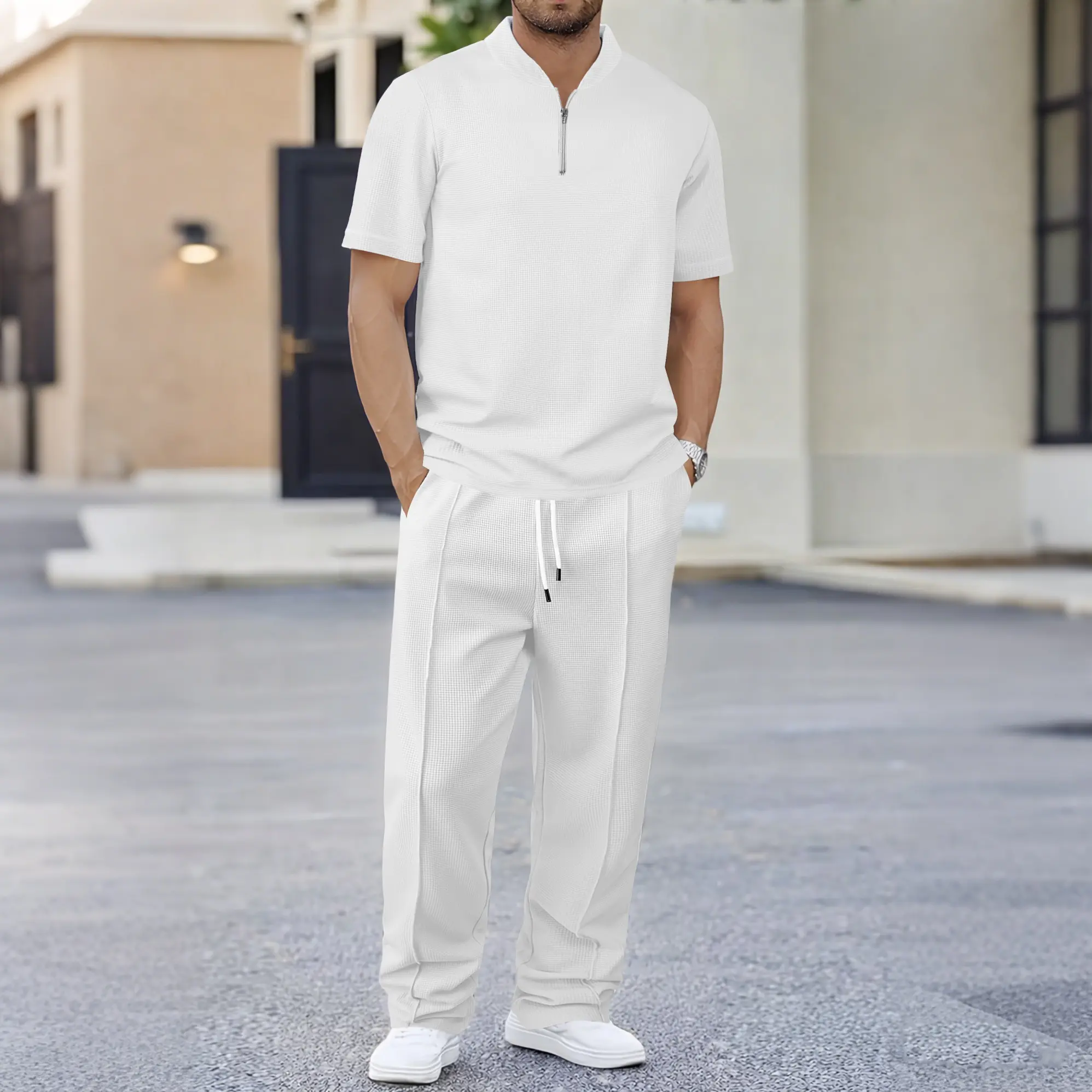 Men’s Print Zip Henley Collar Short Sleeve and Long Pants Two Piece Set Made with Waffle Knit Fabric Breathable Soft Texture Loose Fit for Casual Everyday WearMen’s Print Zip Henley Collar Short Sleeve and Long Pants Two Piece Set Made with Waffle Knit Fabric Breathable Soft Texture Loose Fit for Casual Everyday WearMen’s Print Zip Henley Collar Short Sleeve and Long Pants Two Piece Set Made with Waffle Knit Fabric Breathable Soft Texture Loose Fit for Casual Everyday Wear