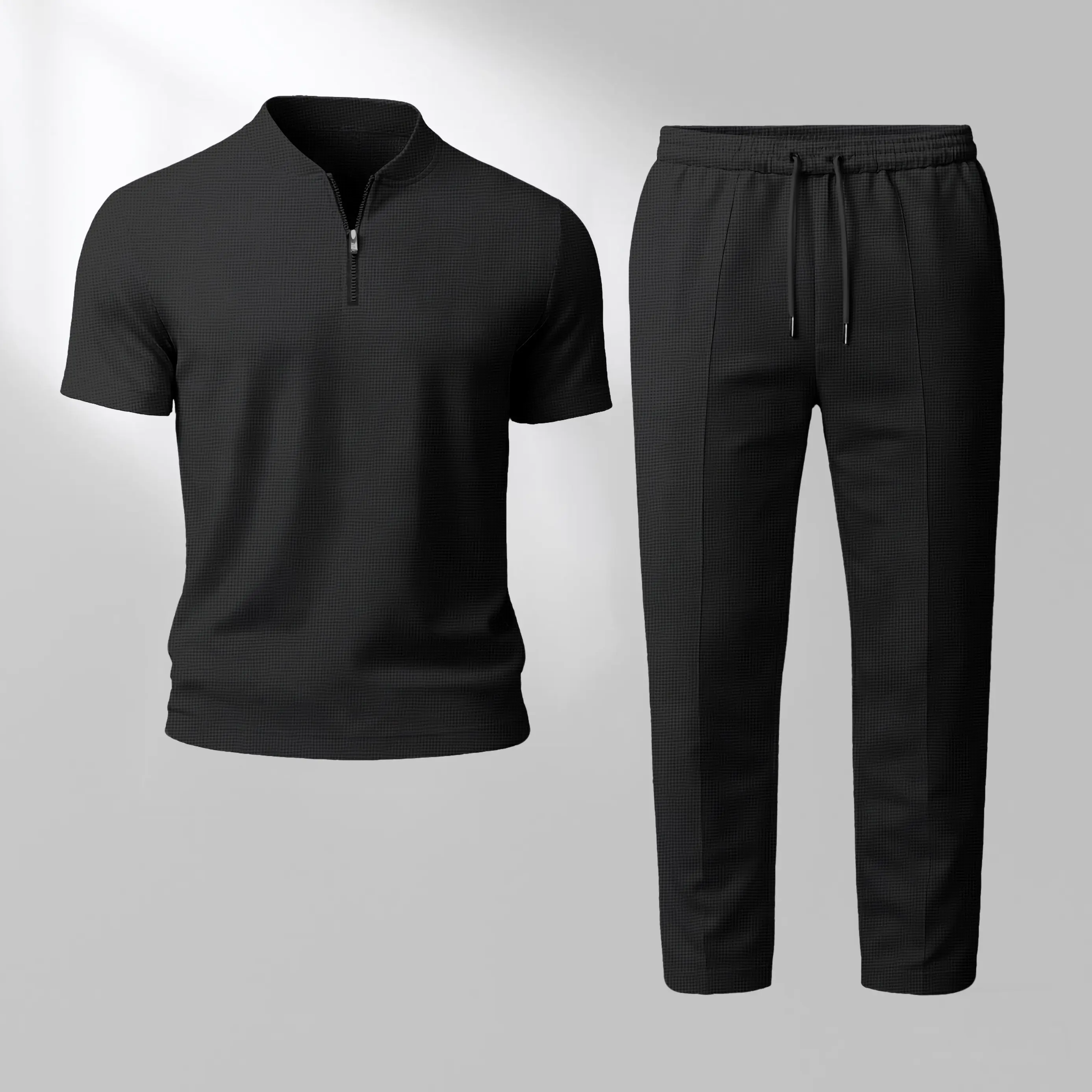 Packaging:Zip Henley short sleeve top + long pants set