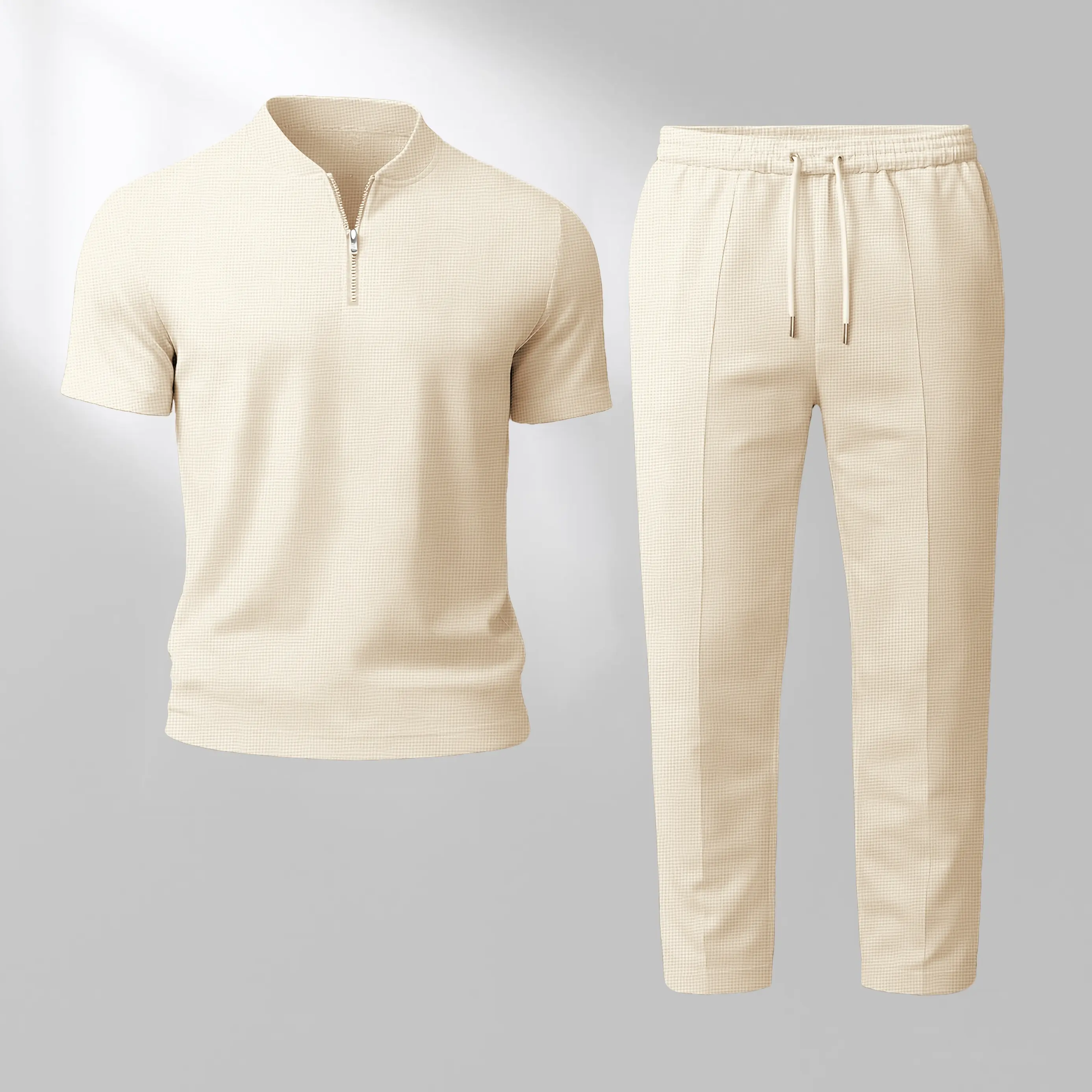 Men’s Waffle Knit Zip Henley Short Sleeve and Long Pants Two Piece Set