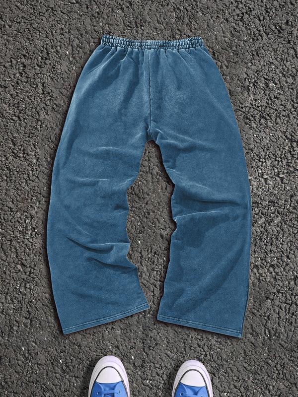 Men's Washed Cotton Long Pants with Jesus Print, Casual Fashion Joggers for Daily Wear, Comfortable and Stylish Men's Clothing