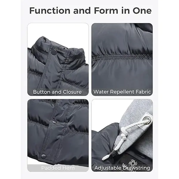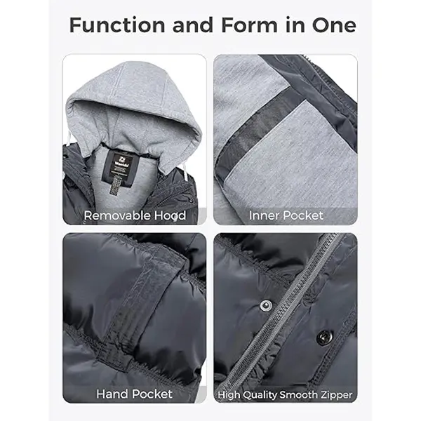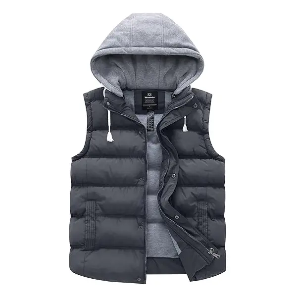 Ā·Warm Puffer Vest That Lasts - You deserve the cozy men's winter vest that keeps up with your busy lifestyle. The men's vest with hood features a removable hood with an adjustable drawstring, 2 big side pockets and 1 deep inside pocket which keeps you warm against the chilly breeze.