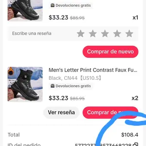 Necesito devolver las botas y mi de mi dinero. Me ocasionaron lesiones en mis pies, debido al material. Teniendo que ir para atenderme por un especialista.